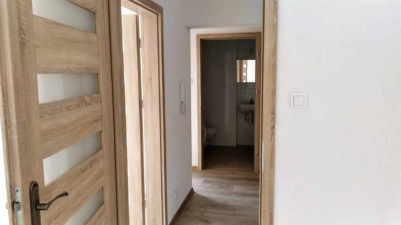Mieszkanie składa się z pokoju z aneksem kuchennym, sypialni, łazienki i przedpokoju. Mieszkanie nieumeblowane. Wyposażona w sprzęt AGD (kuchenka z piekarnikiem, lodówka) kuchnia i łazienka. Mieszkanie po remoncie -odmalowane, nowa łazienka, nowe panele na podłogach, wymienione drzwi wejściowe.