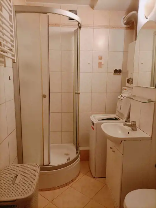 Mieszkanie jest w pełni wyposażone w sprzęt AGD: lodówko-zamrażarka, pralka, piekarnik, kuchenka gazowa, okap, mikrofalówka, czajnik.