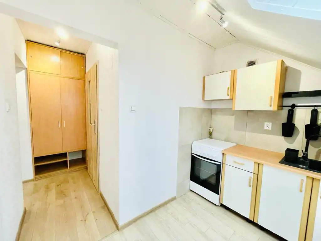 W kuchni znajdują się meble, piekarnik, kuchenka gazowa, okap, w łazience pralka, wanna i toaleta, a w przedpokoju szafa. Dodatkowo sofa, łóżko, komoda, etc.