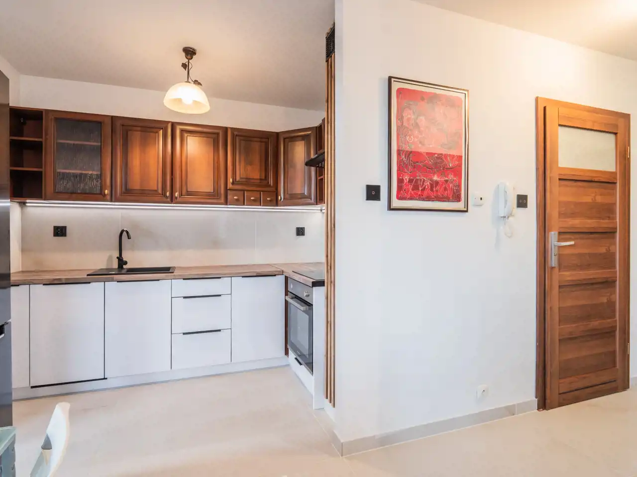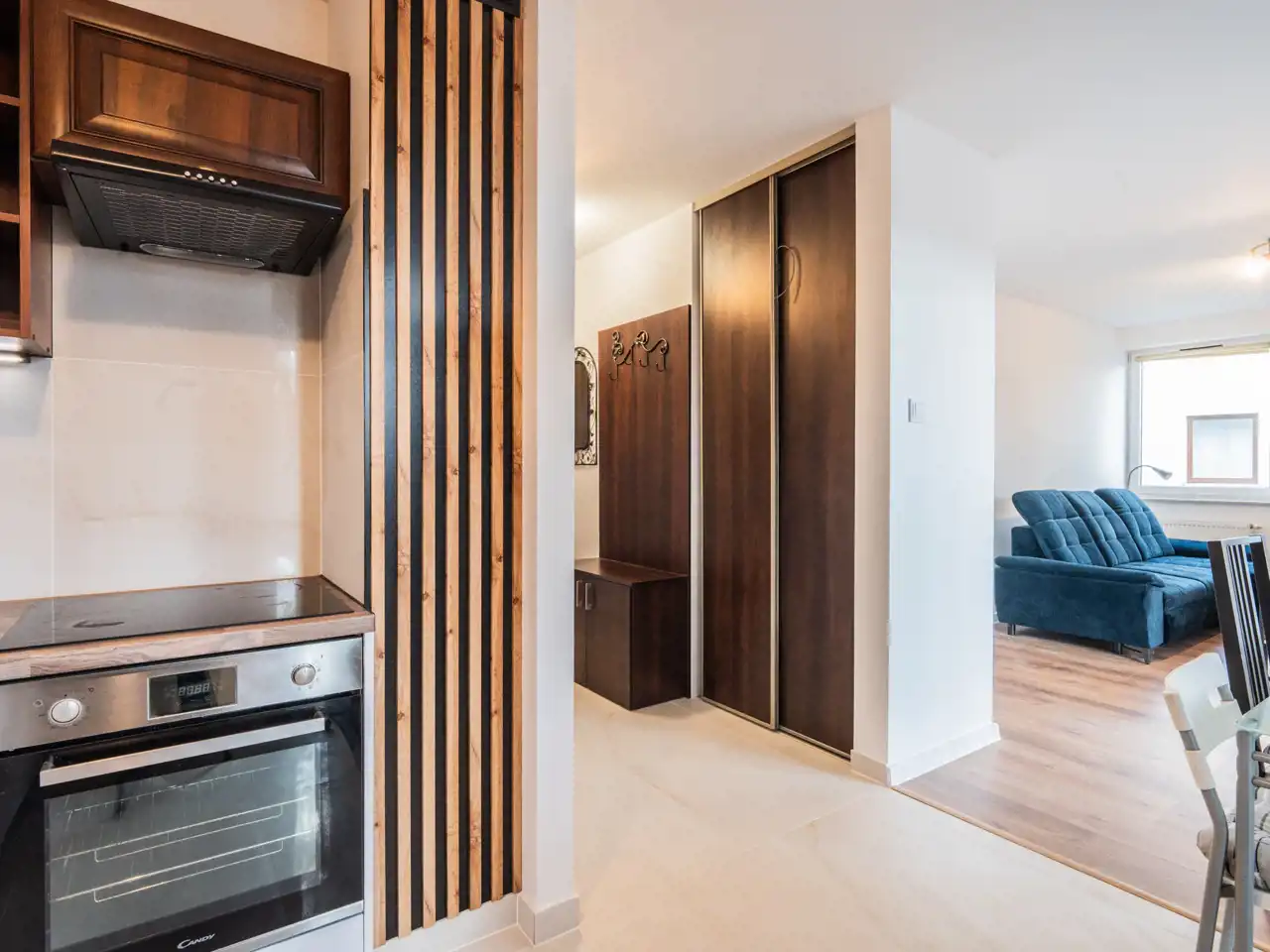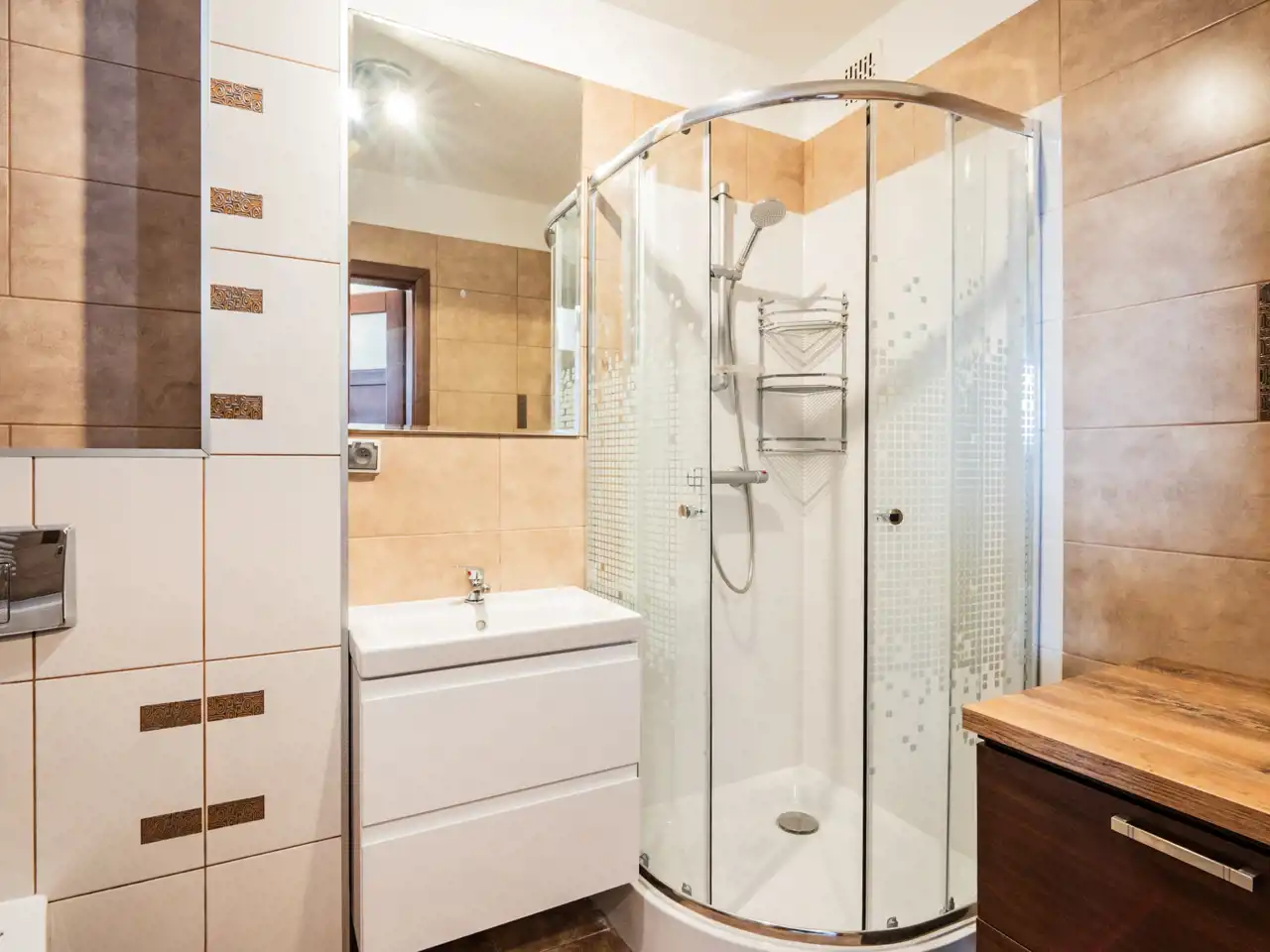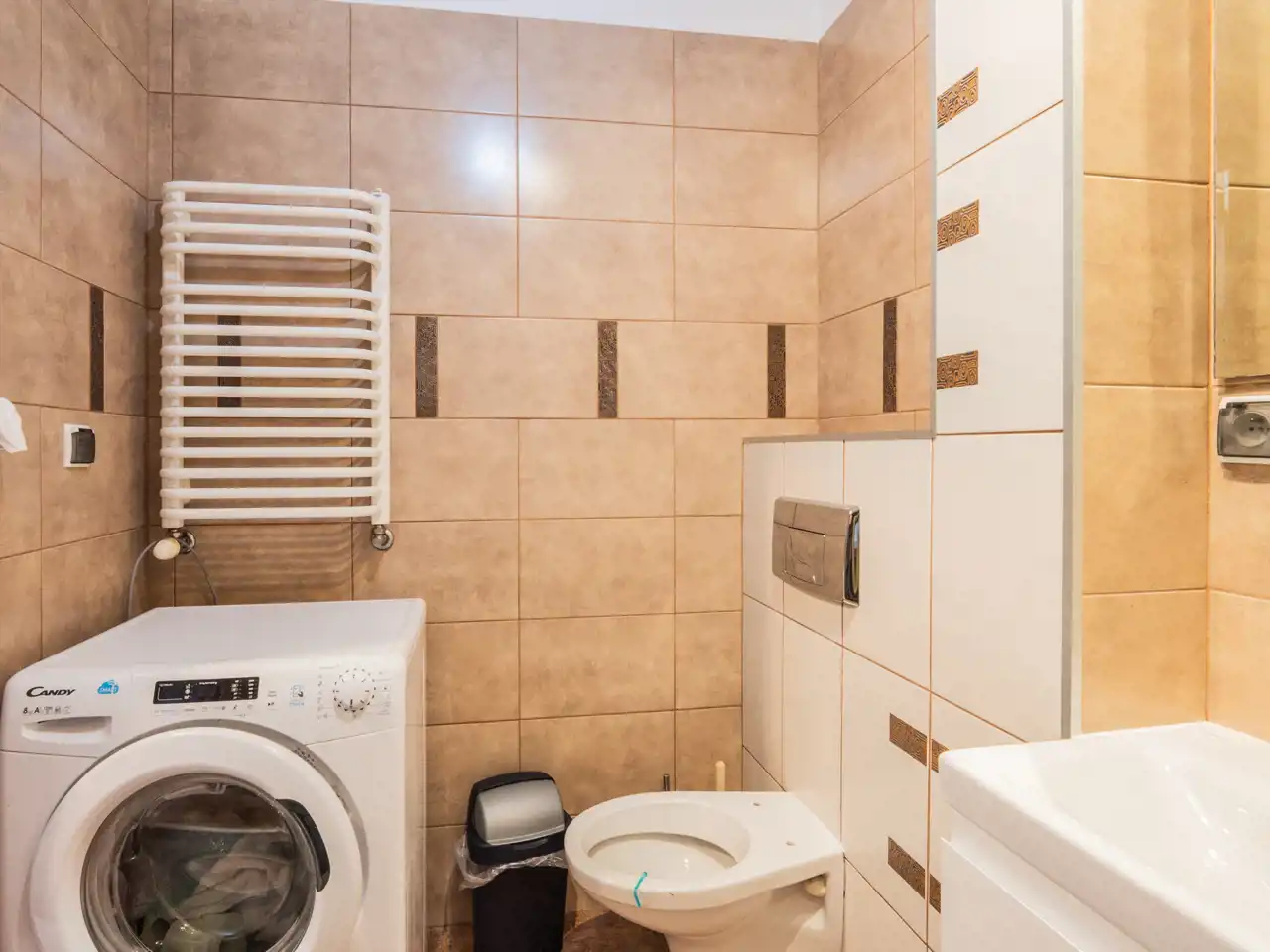 Kuchnia oraz łazienka są w pełni umeblowane i wyposażone w niezbędne sprzęty.