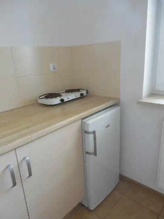 kuchnia: zabudowa kuchenna, lodówka, 2-palnikowa kuchenka elektryczna,
