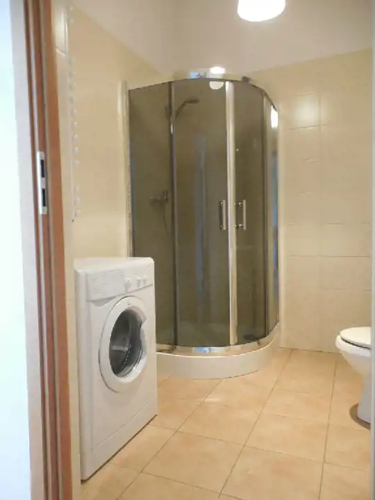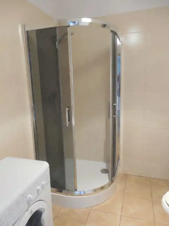 łazienka: kabina prysznicowa, pralka.