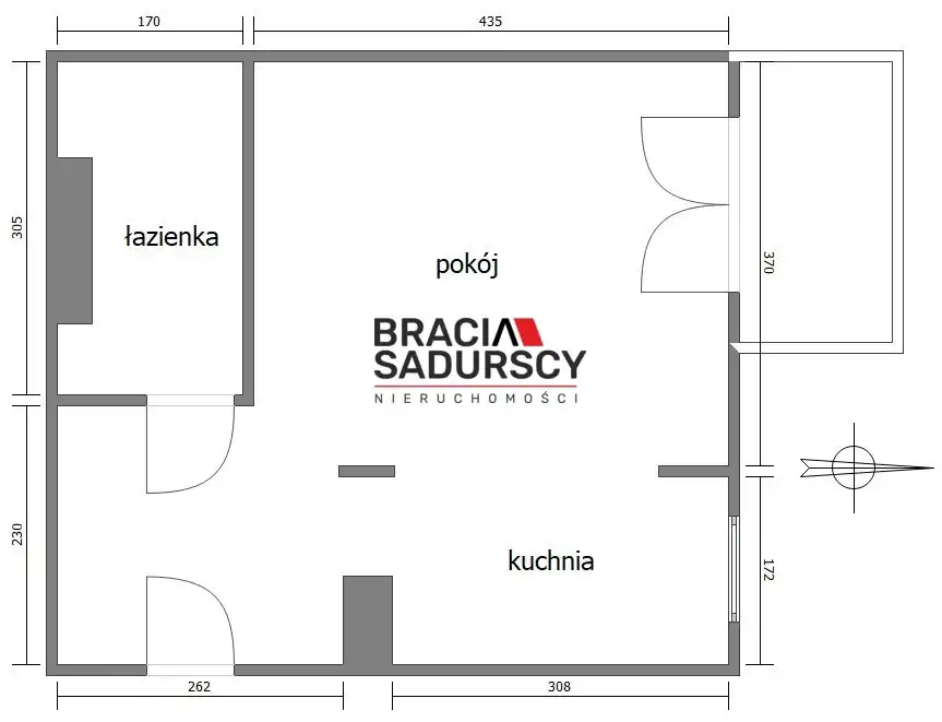 pokój z kuchnią i częścią jadalną