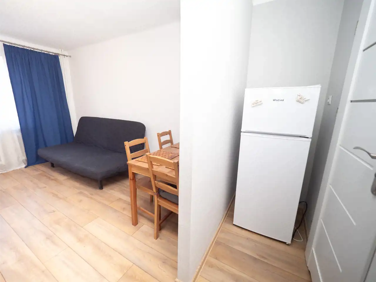 The apartment is fully equipped and decorated in a modern style. District heating and hot water are provided. Parking is available on the estate (no parking zone). It offers a pleasant view of the green surroundings.