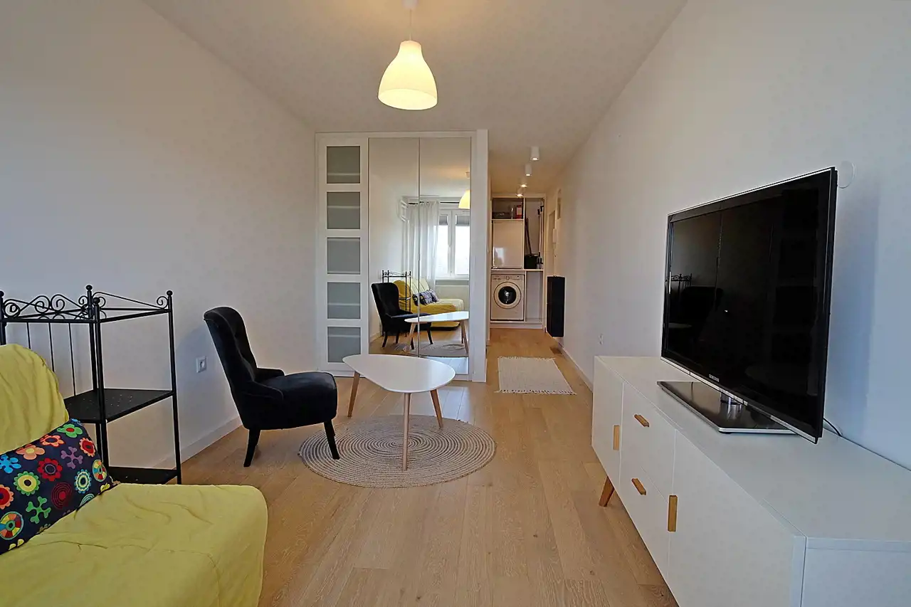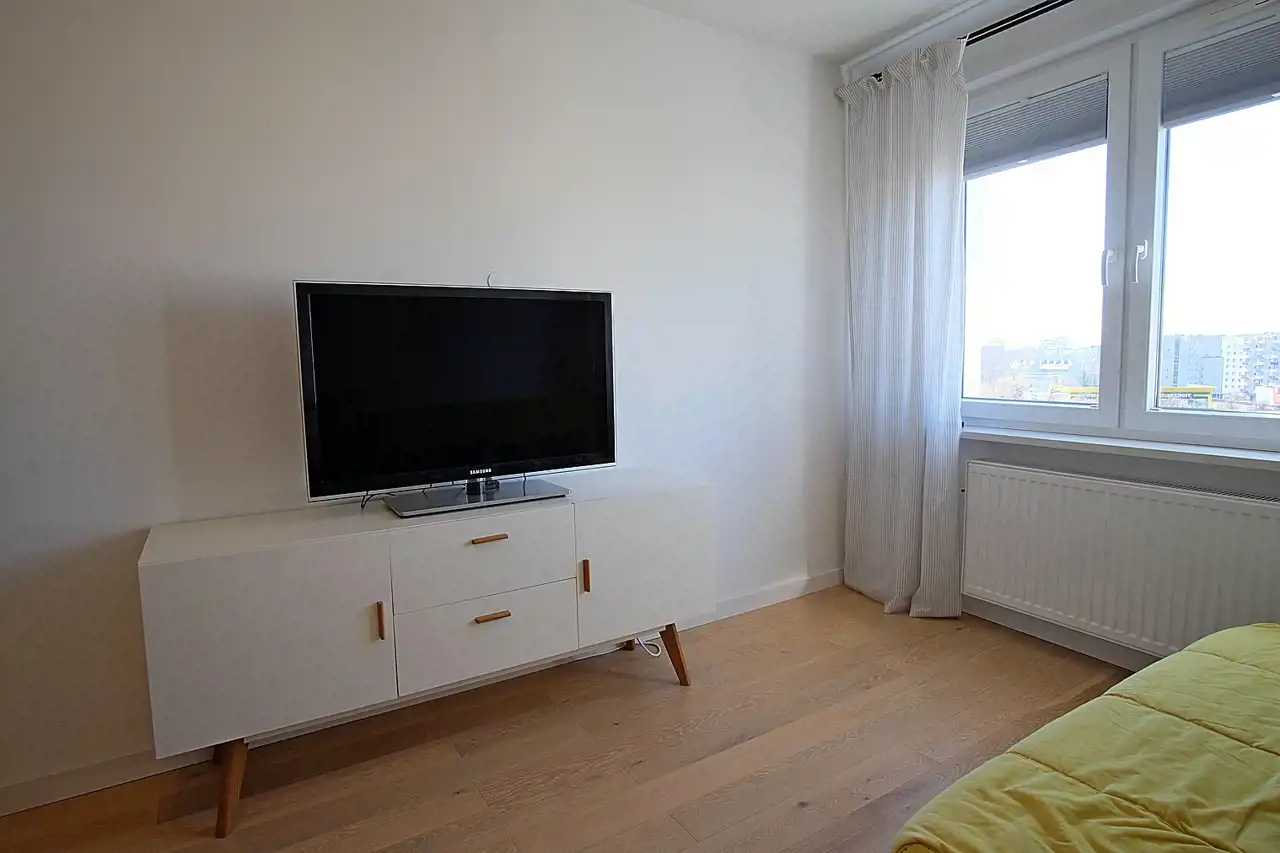 W pokoju wersalka, stolik z fotelem, szafa w zabudowie, telewizor. Szybki internet i tv kablowa z UPC lub TOYA.