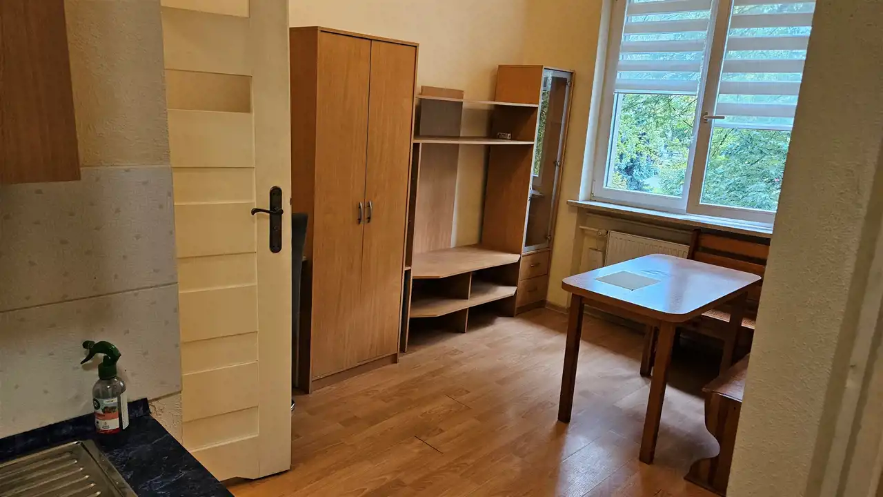 Mieszkanie 2 pokojowe z kuchnią w formie aneksu, mała sypialnia oraz funkcjonalny duży pokój z jadalnią. Okna pcv, na podłogach panele, łazienka wyposażona w kabinę prysznicową, umywalkę.