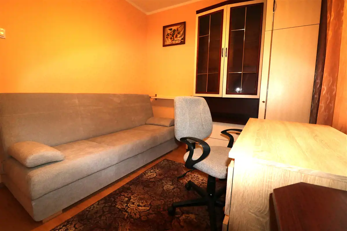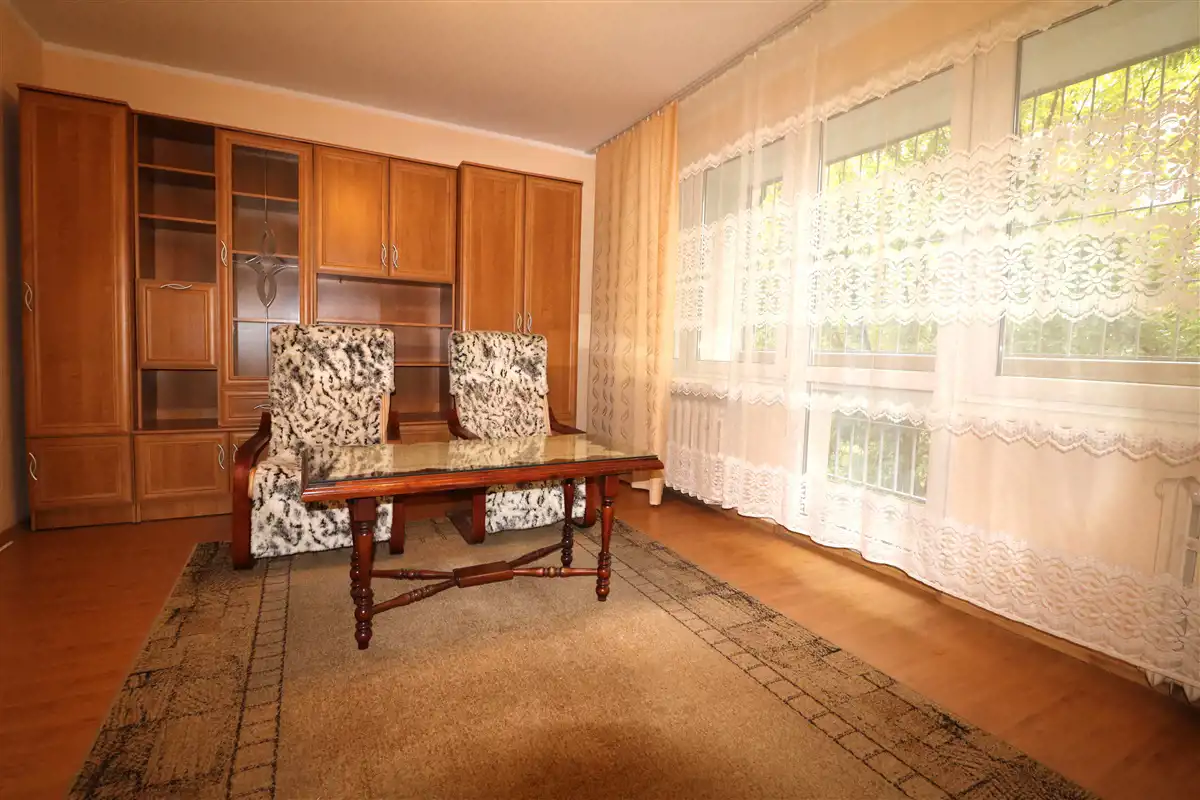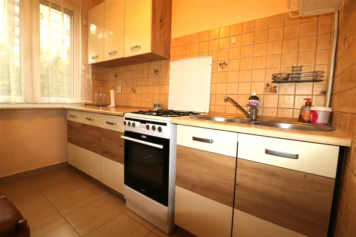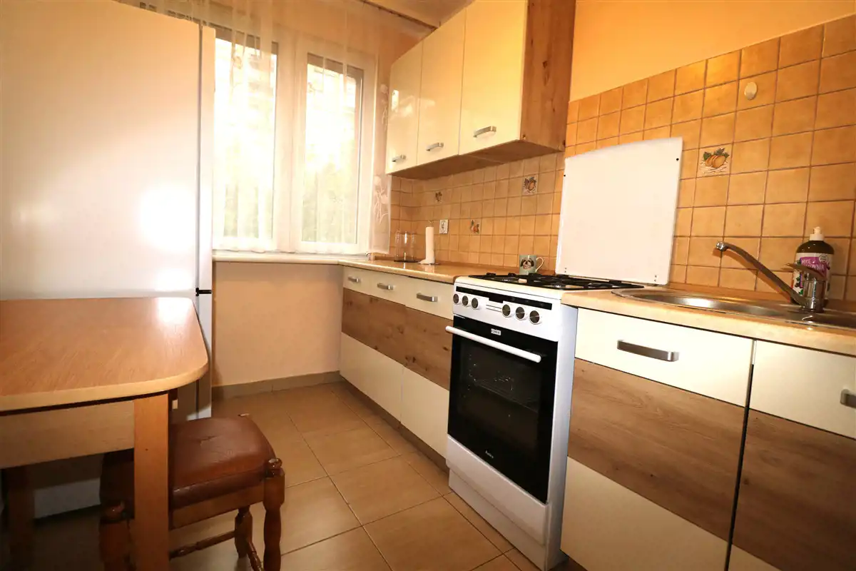Woda ciepła i ogrzewanie miejskie. Okna PCV. Wystawa okien w sypialni i kuchni jest schodnia, w salonie południowa.