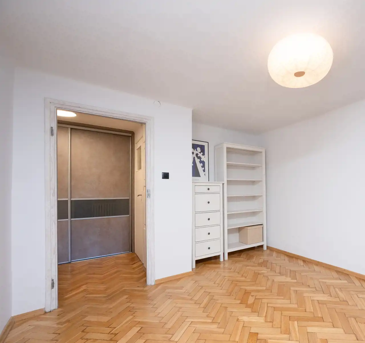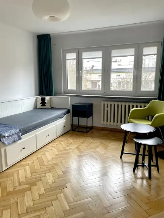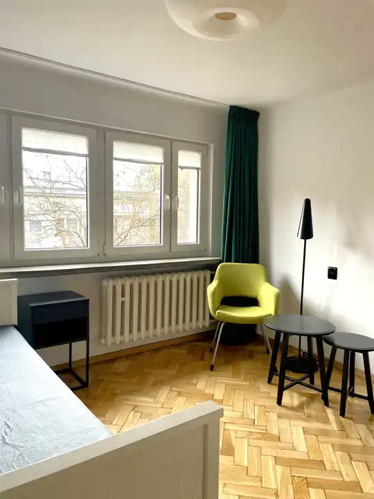 Pokoju, z ładnym parkietem, częściowo umeblowanego ( komoda półki, łóżko Hemnes z wygodnym materacem)
