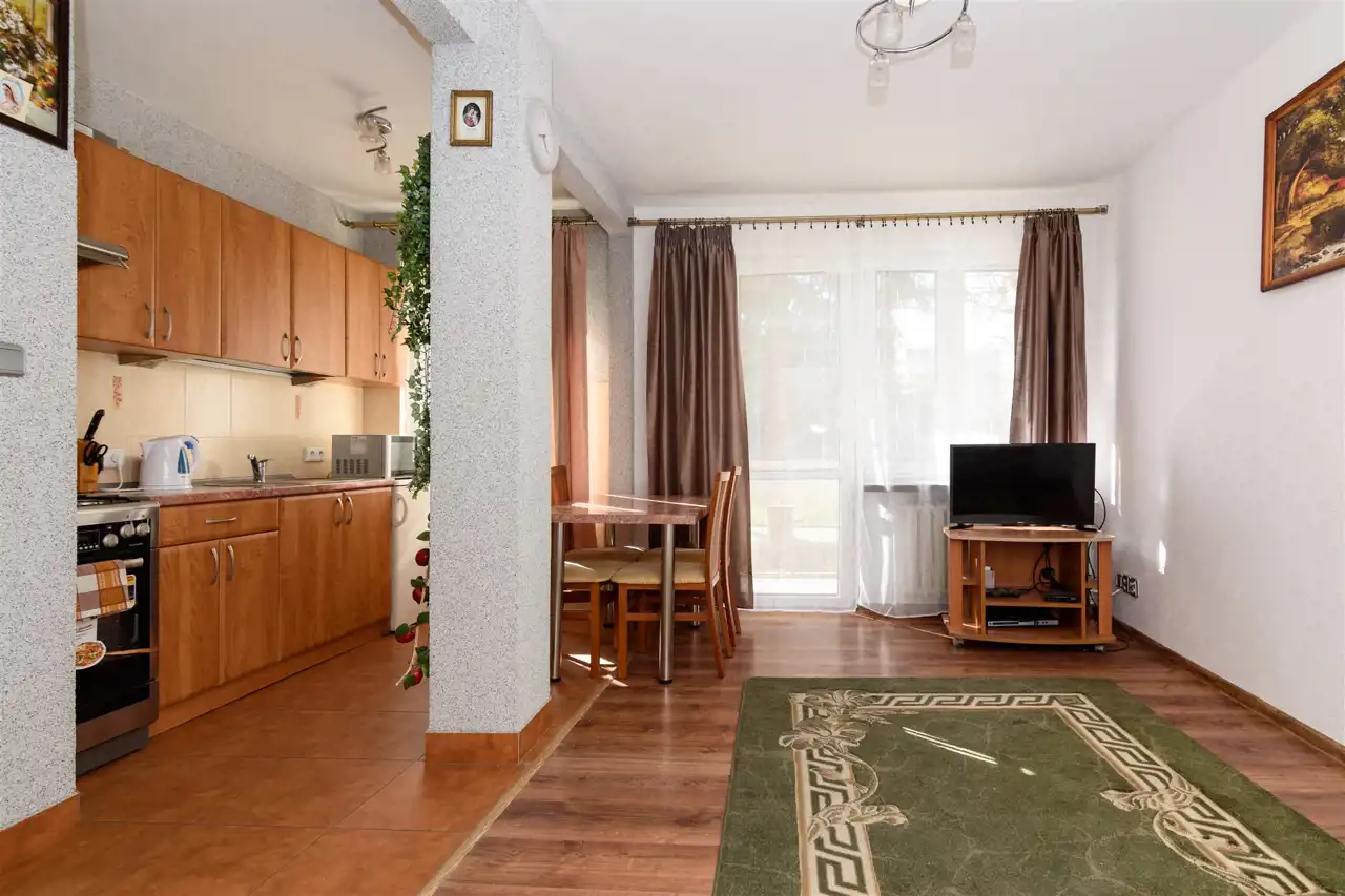 A cozy studio apartment available for rent immediately, located in a quiet and green area at 34 Snycerska Street, near Jerzmanowskich Park.