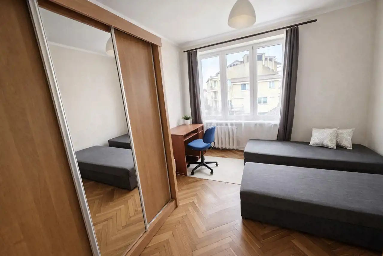 Mieszkanie jest ciche, mimo że znajduje się w centrum miasta. Dużym atutem jest bliskość przystanku tramwajowego, dzięki czemu dojazd do innych części miasta jest szybki i wygodny.