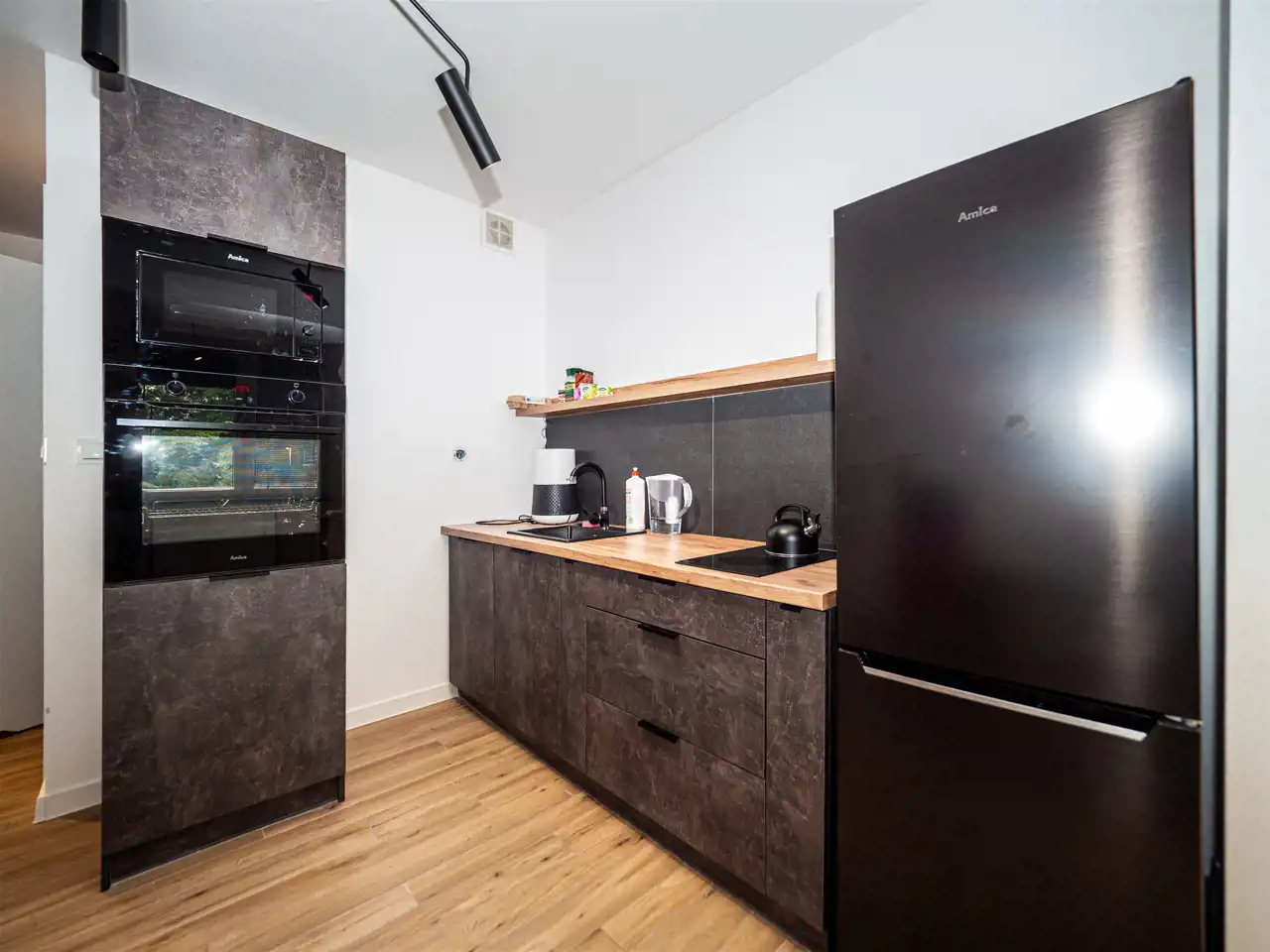 Kawalerka o powierzchni 20 m² została wykończona w wysokim standardzie.