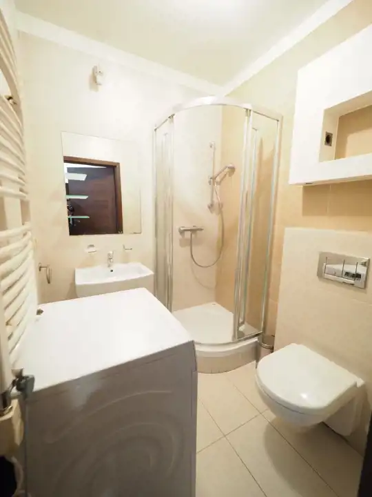 W mieszkaniu znajdują się wszystkie sprzęty potrzebne do życia i mieszkania. Okna wychodzą na oficynę.