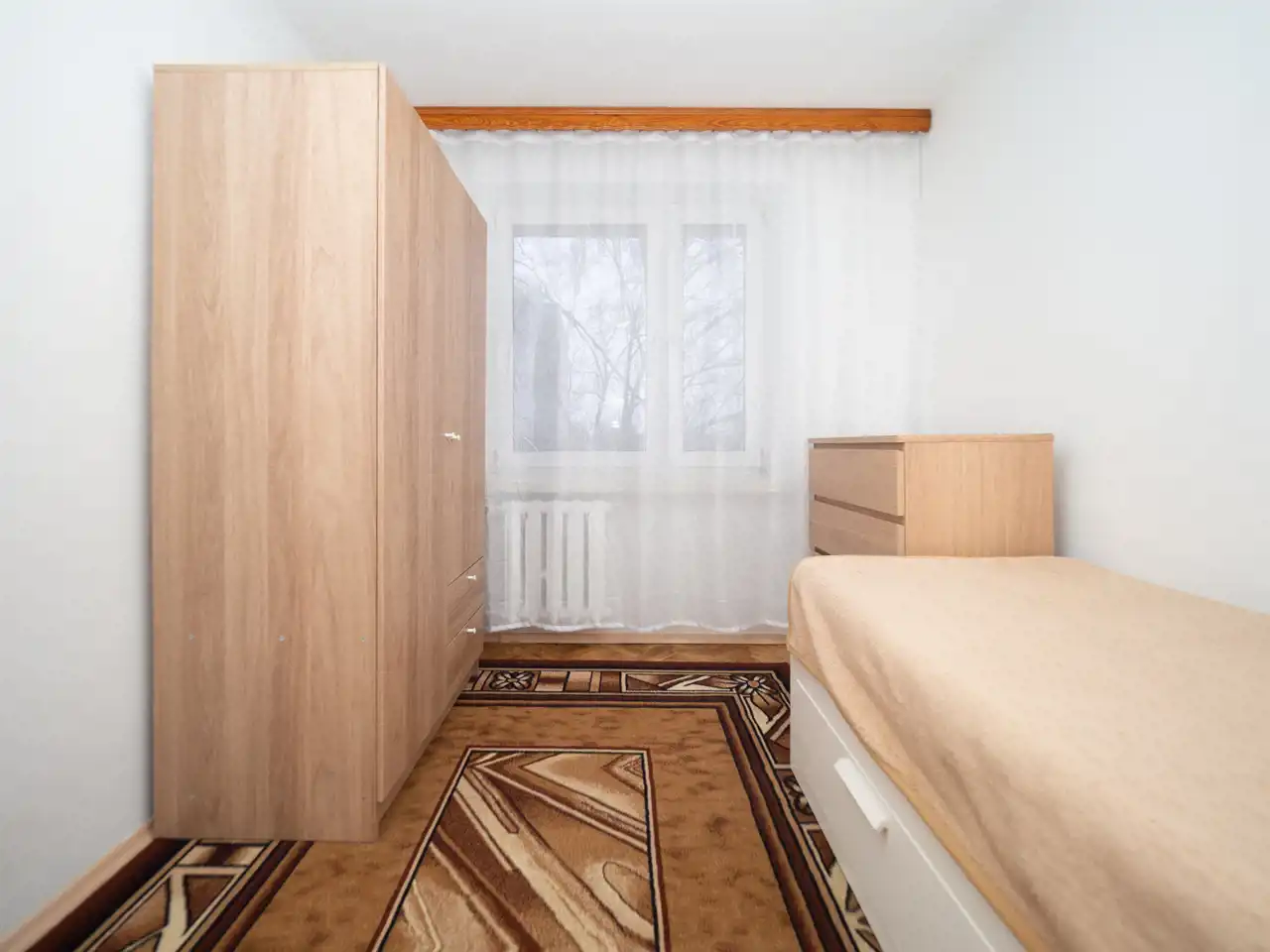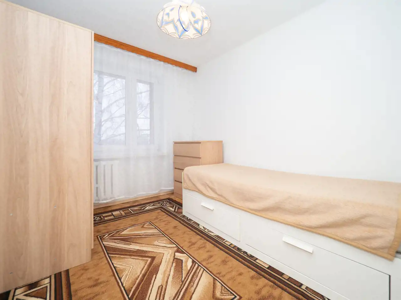 - a separate room with a fold-out bed and a large wardrobe,