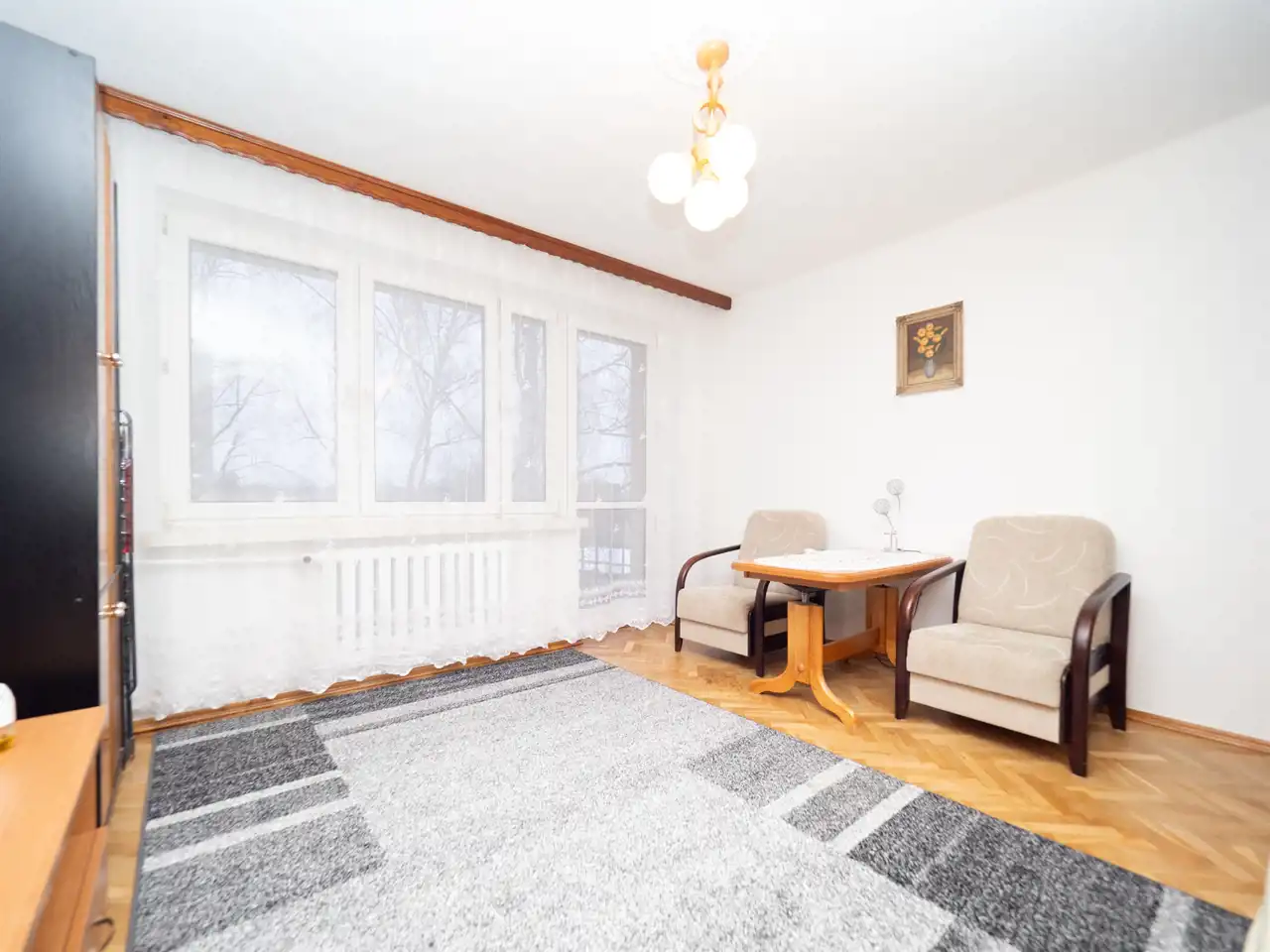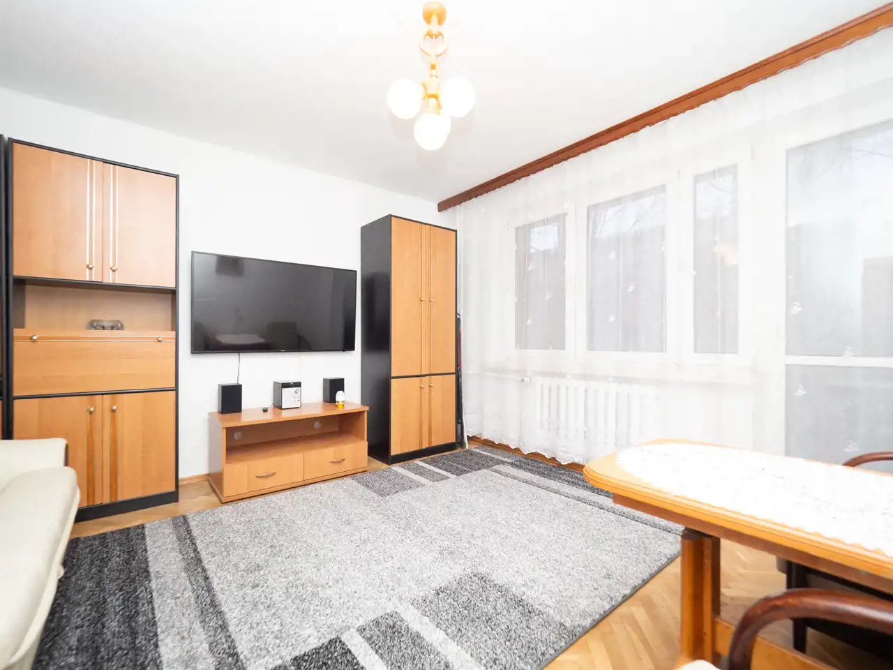 The apartment is located on the 2nd floor of a building from the 1970s. A quiet and green area – in summer, pleasant shade is provided by birch trees growing in front of the building, and the windows offer a nice view. Excellent public transport connections to all parts of Kraków – bus stops are located approx. 100 meters from the building. Nearby there are numerous grocery stores, two parks, Galeria Bronowice, IKEA, and full service infrastructure. Street parking is available.