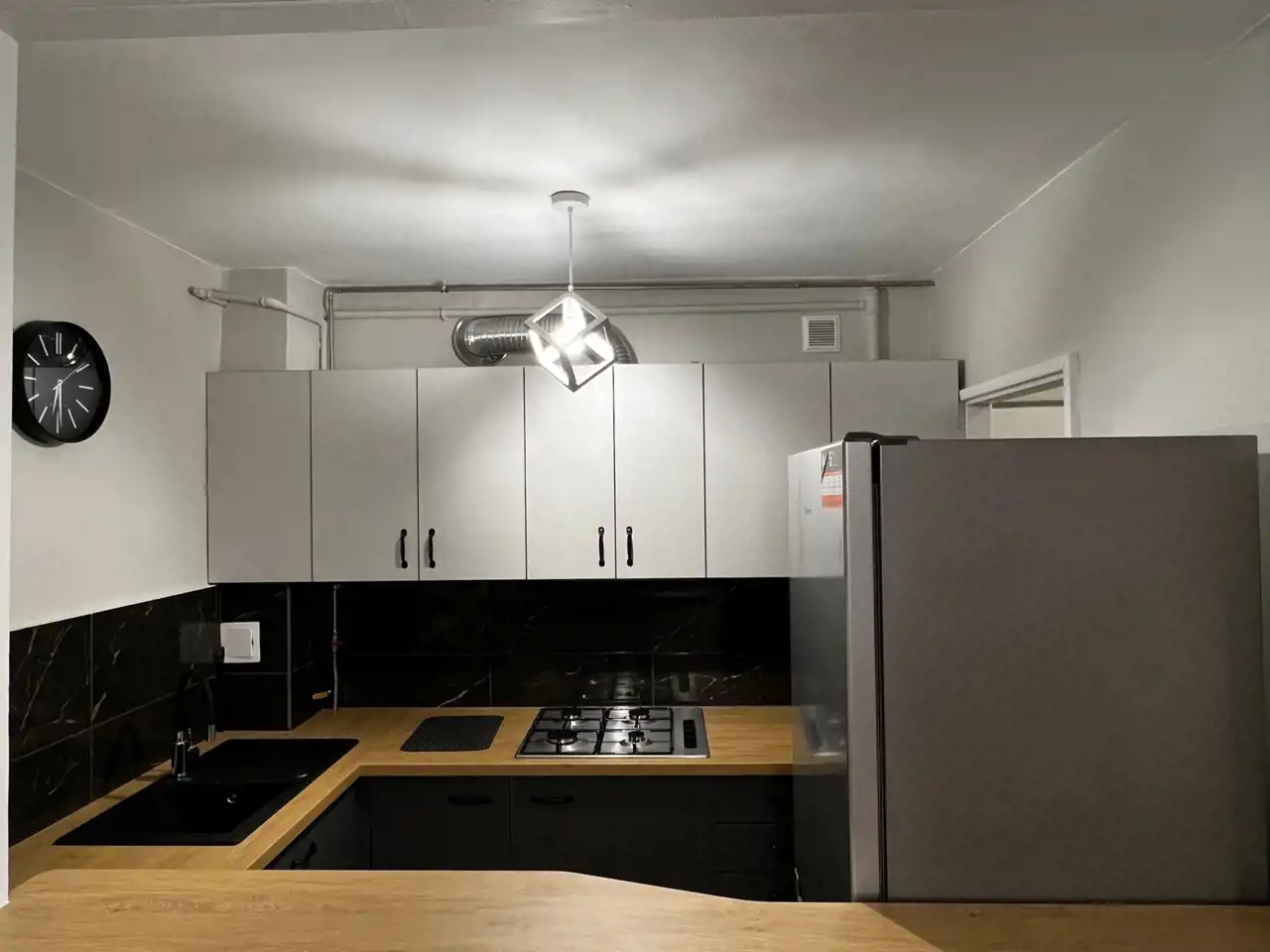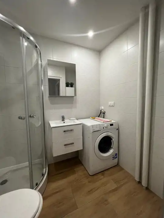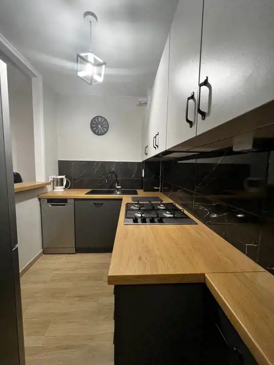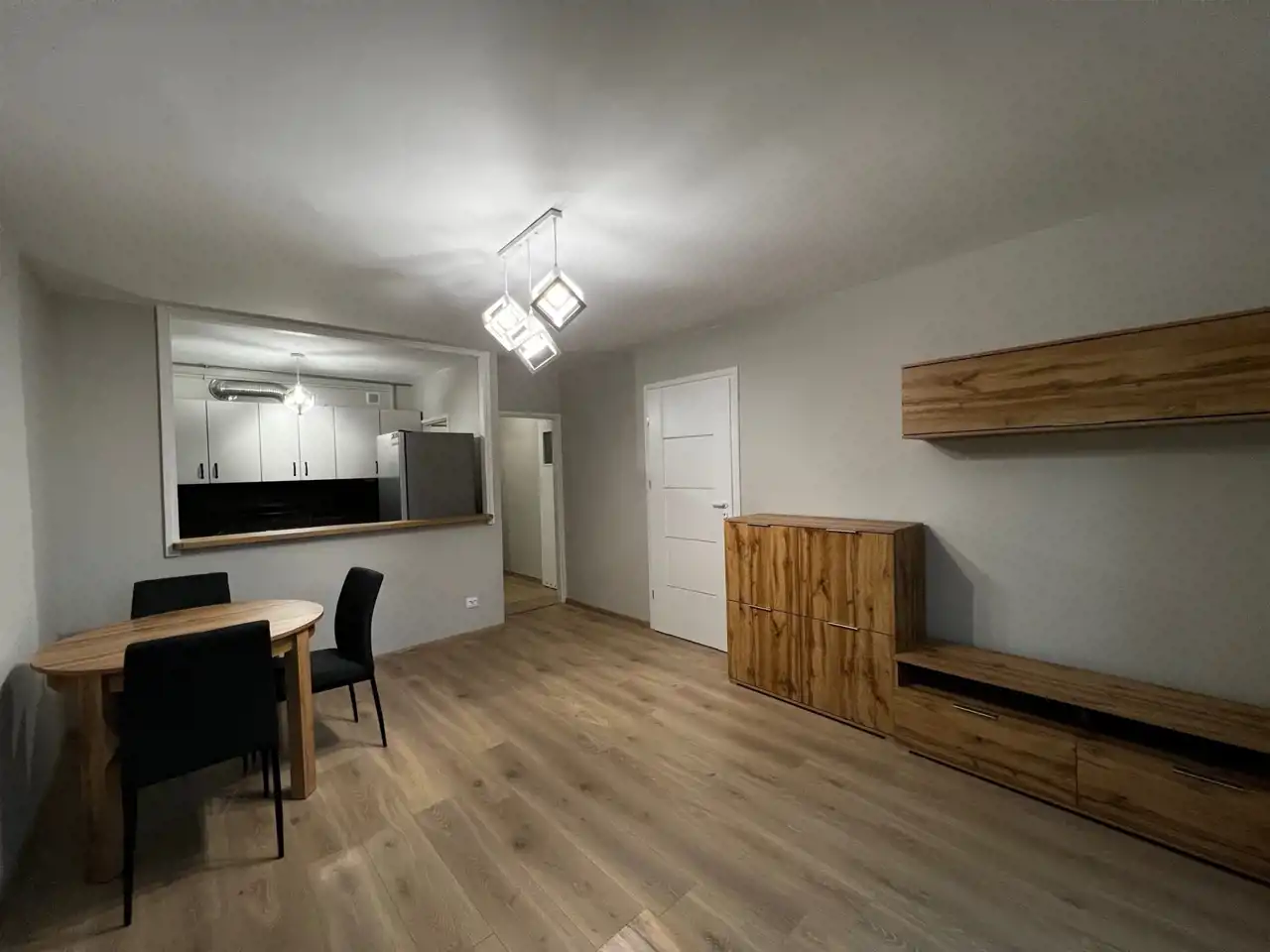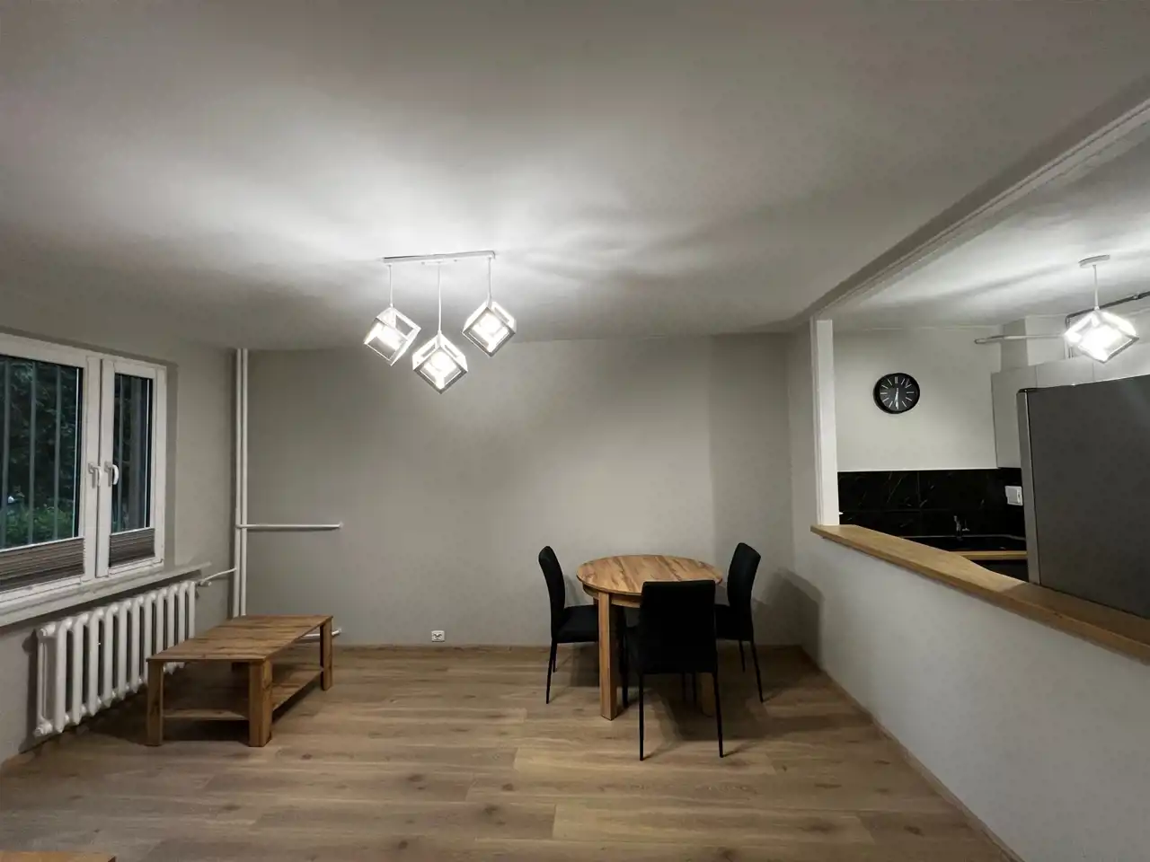 Mieszkanie składa się z salonu wraz z częściowo otwartą kuchnią, pokoju, łazienki z WC, przedpokoju. Mieszkanie jest świeżo po gruntownym remoncie w tym min: nowa meble kuchenne, drzwi podłogi, wyposażone z umeblowaniem. W łazience prysznic, umywalka, WC, lustro oraz pralka. W pokoju biurko z krzesłem oraz 2 drzwiowa szafa garderobiana. Na podłogach panele.