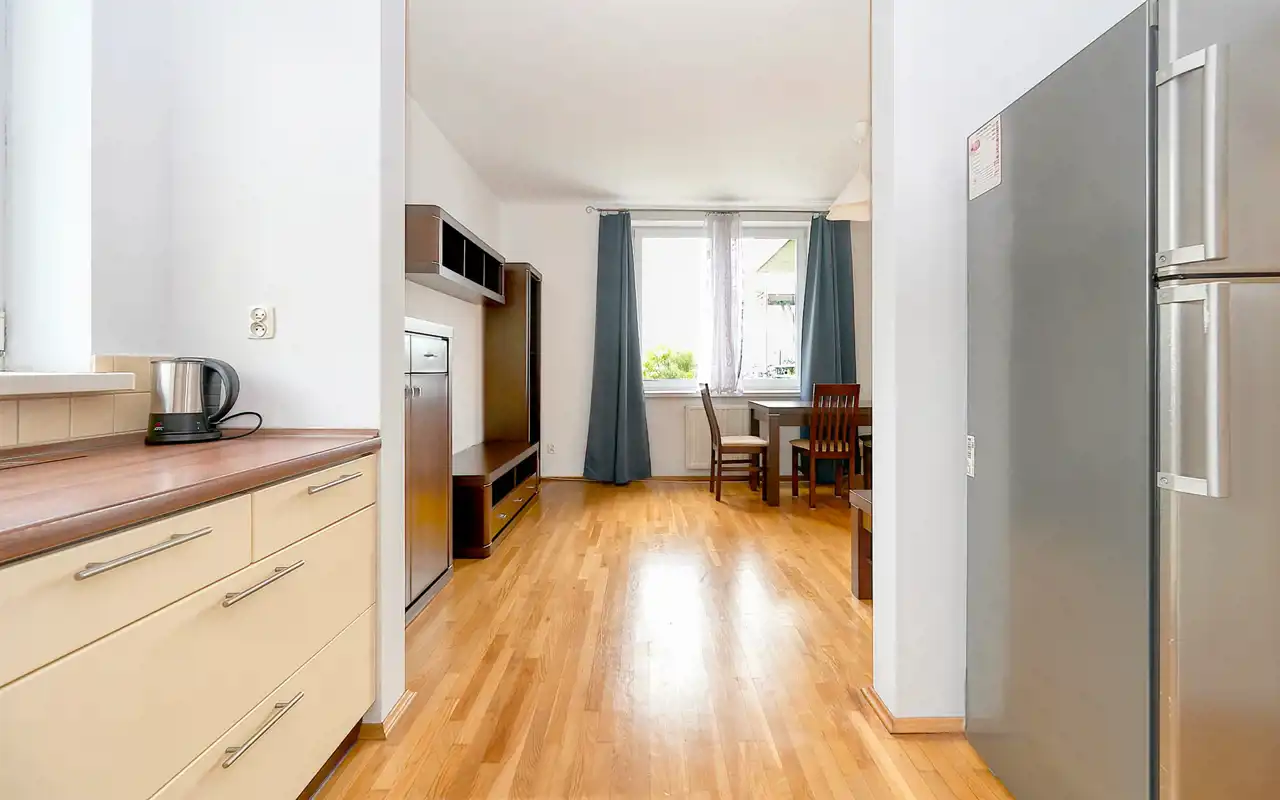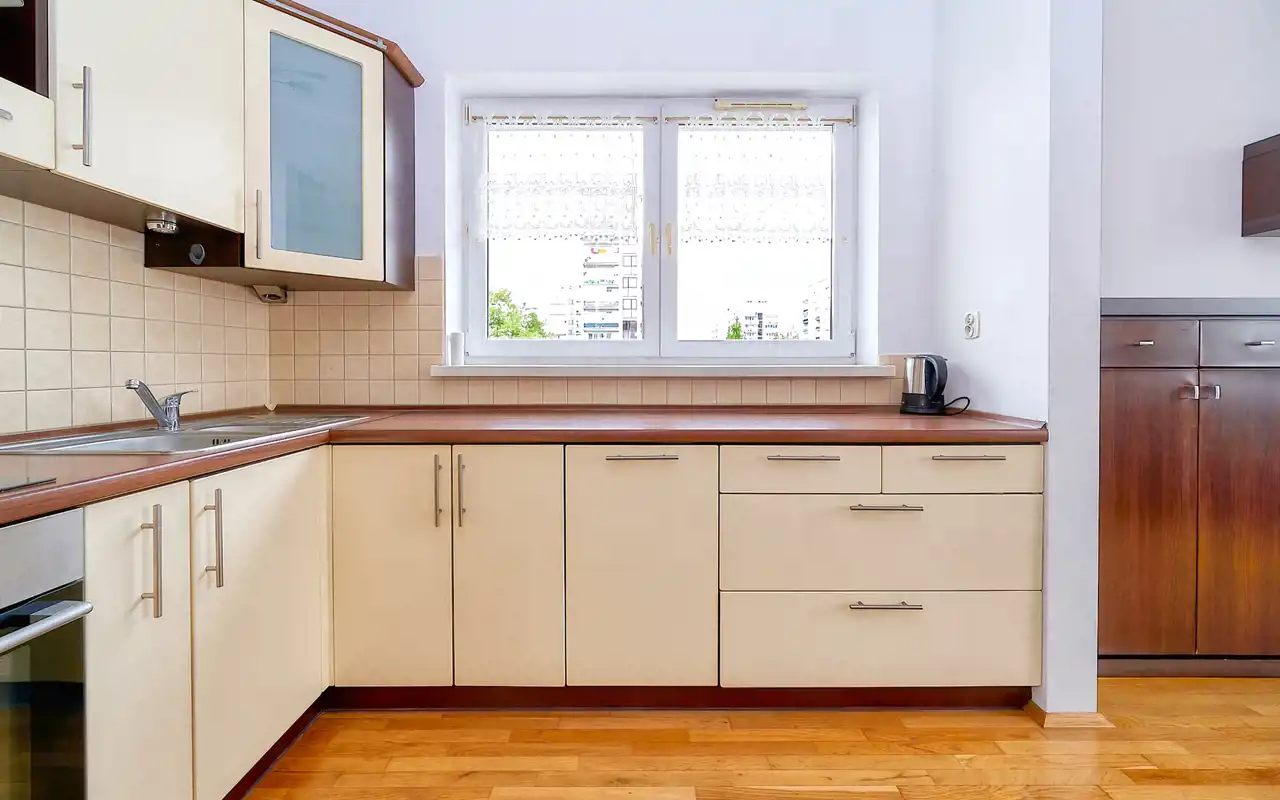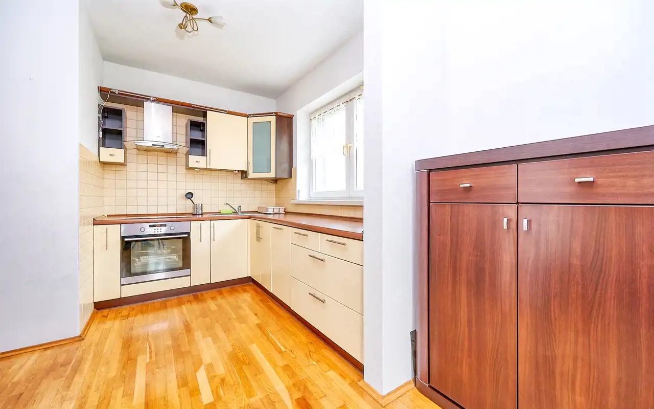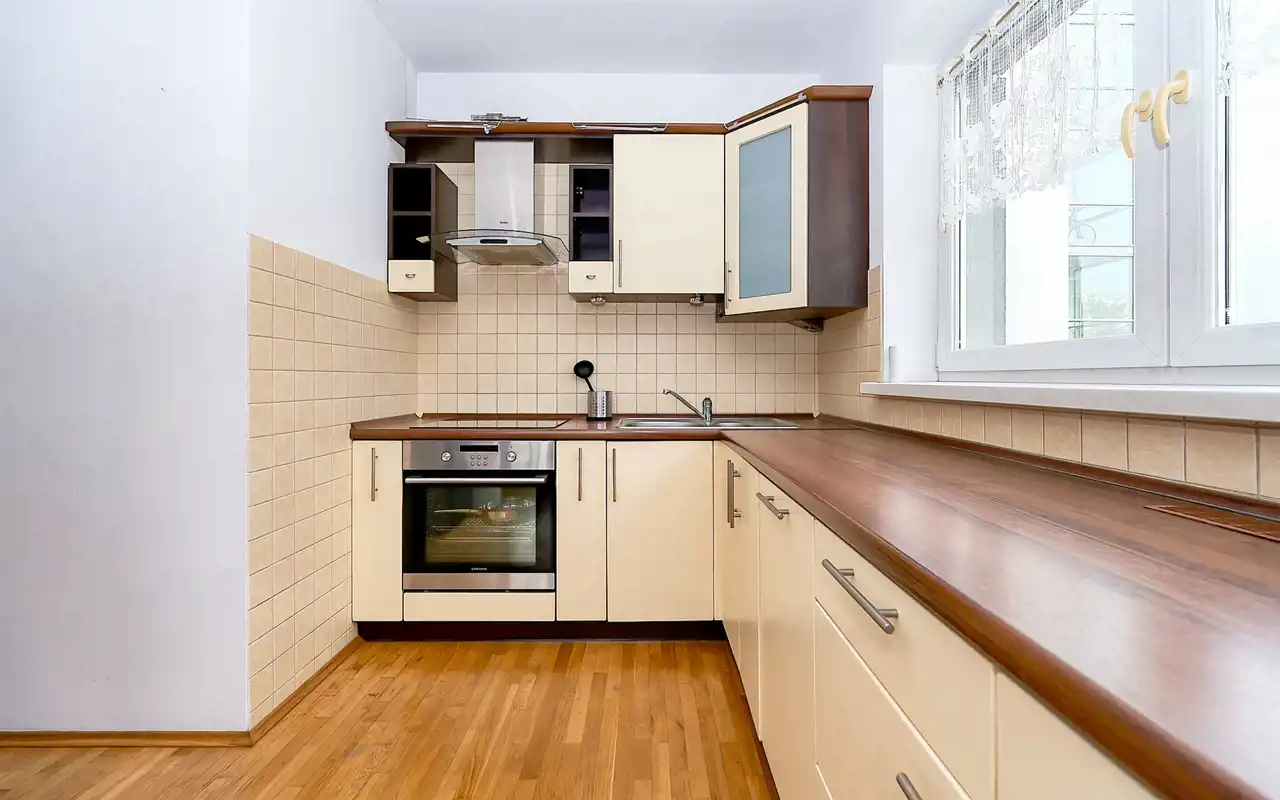 Mieszkanie w dobrym standardzie, bardzo zadbane. Na podłodze parkiet – ciepły i trwały, kuchnia w zabudowie z podstawowym sprzętem, łazienka w glazurze. Ogrzewanie miejskie.