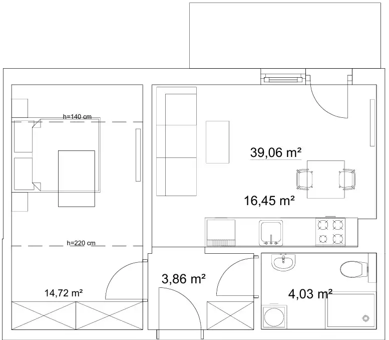 - Charakterystyka mieszkania 39.5 m2, 2 pokoje