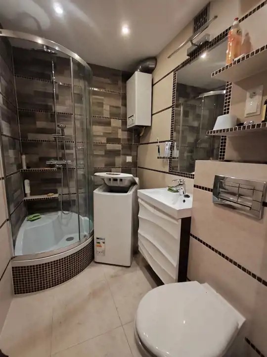 - Media Ogrzewanie: C.O. miejskie; Woda: przepływowy piec gazowy; Gaz: jest