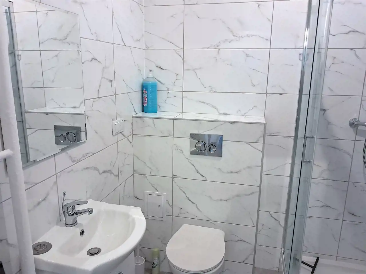 - łazienki z prysznicem i pralką