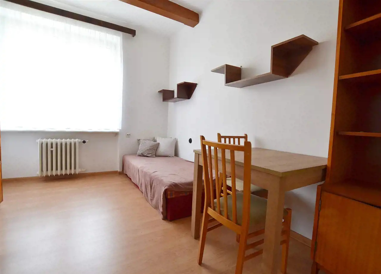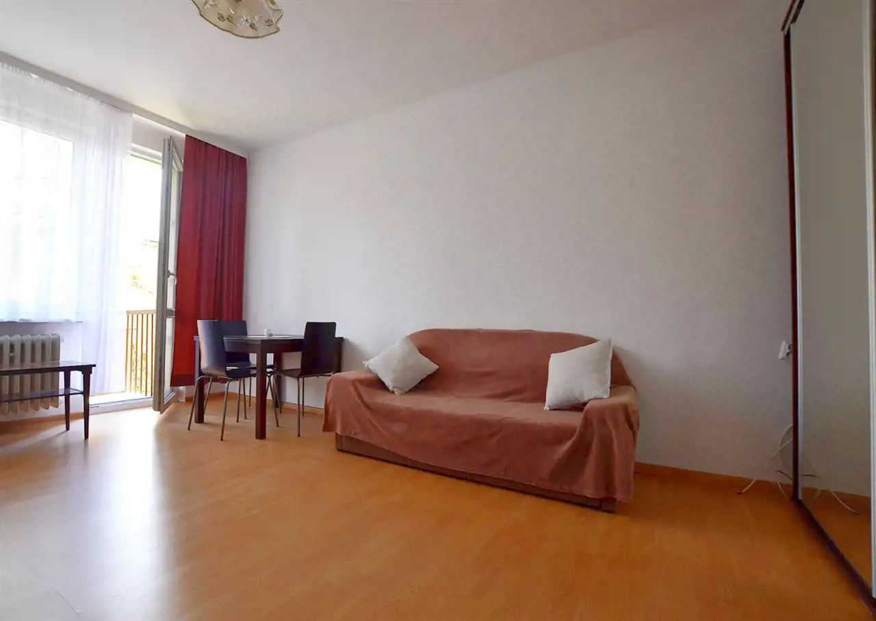 Mieszkanie umeblowane. Na wyposażeniu pralka, lodówka, podstawowe naczynia i wyposażenie. Mieszkanie jasne i ciepłe - ogrzewanie centralne miejskie. Ciepła woda z piecyka gazowego. Dostępne od grudnia. Kameralny budynek położony jest przy zielonej, zacisznej ulicy Staffa. II piętro w IV piętrowym budynku.