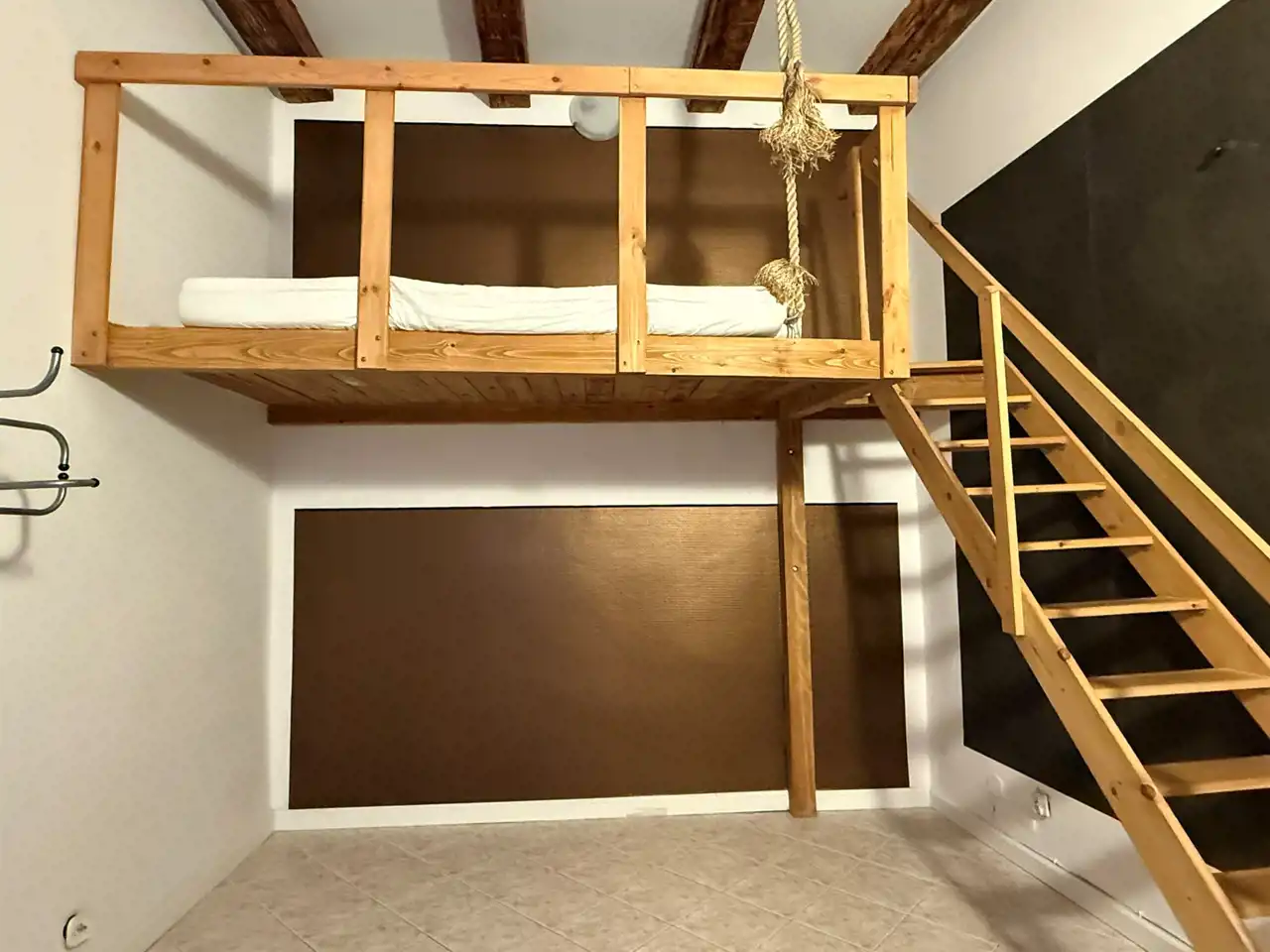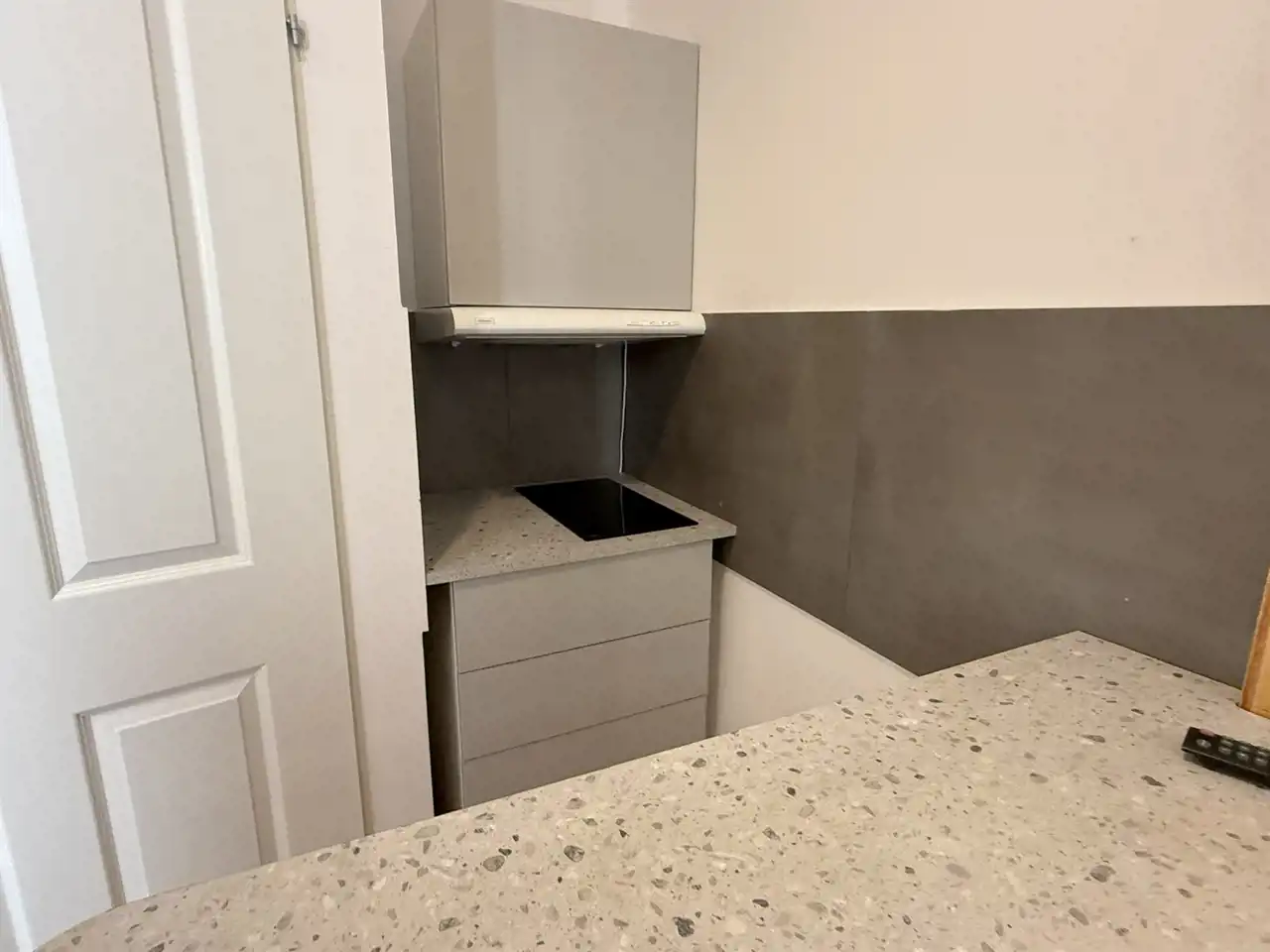 Mieszkanie 30 m2 składa się z kuchni, łazienki i dużego pokoju z antresolą.