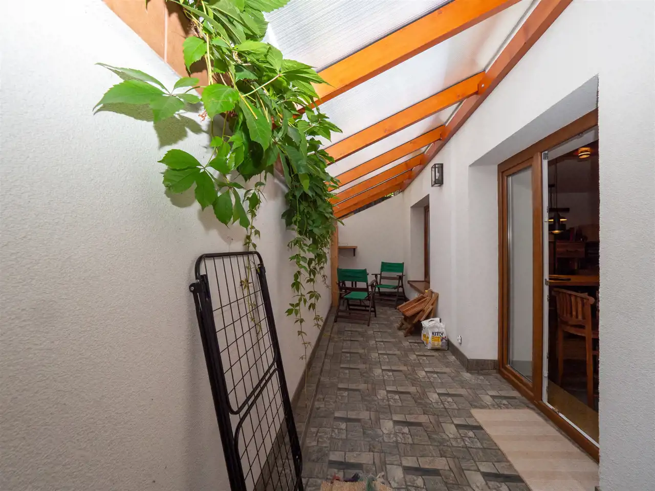Duże, zadaszone patio z zestawem wypoczynkowym