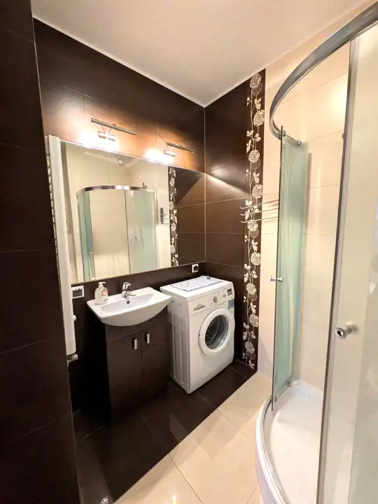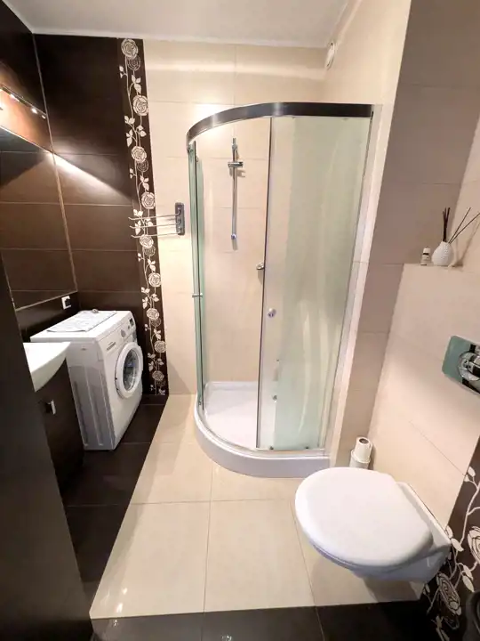 Dodatkowo odzielna kuchnia, korytarz, duża łazienka z pryszniacem i pralką.