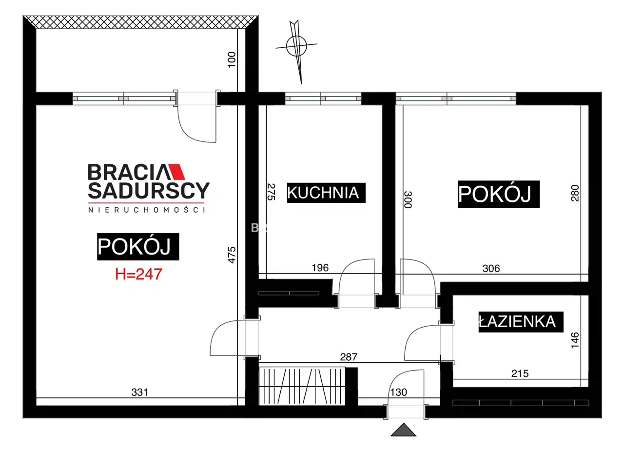 Układ mieszkania jest funkcjonalny – dwa niezależne pokoje oraz osobna kuchnia zapewniają komfort i prywatność.