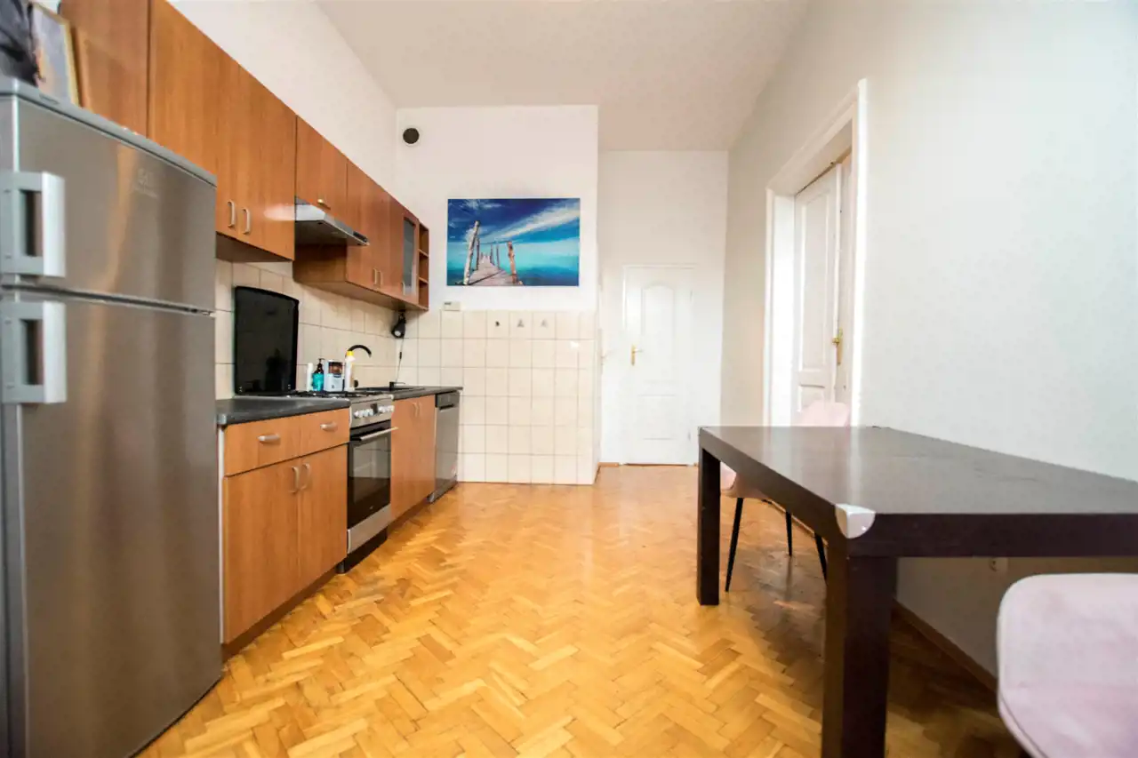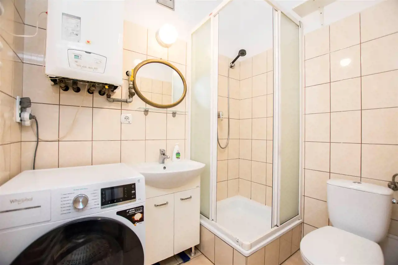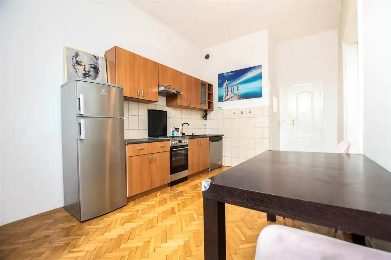 Mieszkanie jakiś czas temu przeszło generalny remont. Częściowo umeblowane i wyposażone. W pokoju dziennym znajduje się zestaw mebli, podwójne łóżko. Kuchnia w pełni wyposażona: zabudowa kuchenna, kuchenka gazowa z piekarnikiem, lodówka z zamrażarka, zmywarka stół z krzesłami. Łazienka z prysznicem, tolaletą i pralką oraz dodatkowe pomieszczenie do przechowywania. Ogrzewanie gazowe.