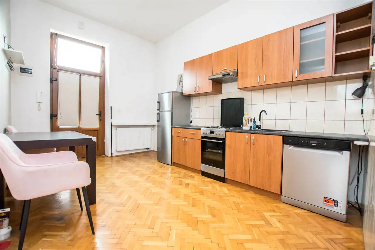 Prezentowane mieszkanie mieści się w oficynie zabytkowej odrestaurowanej kamienicy położonej przy Rynku Podgórskim.