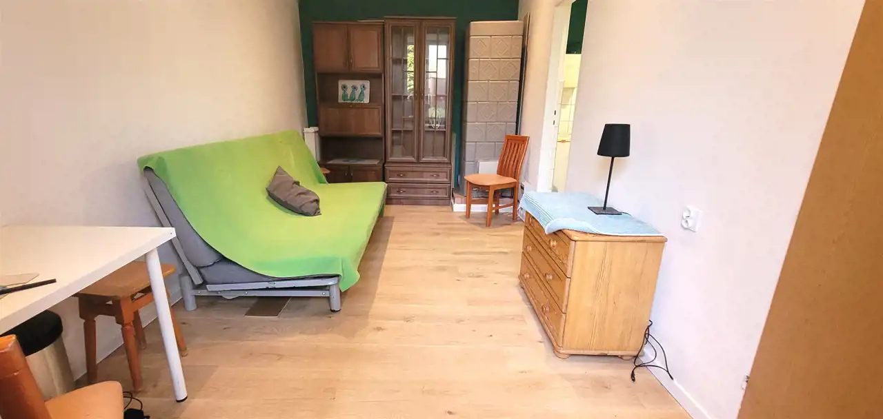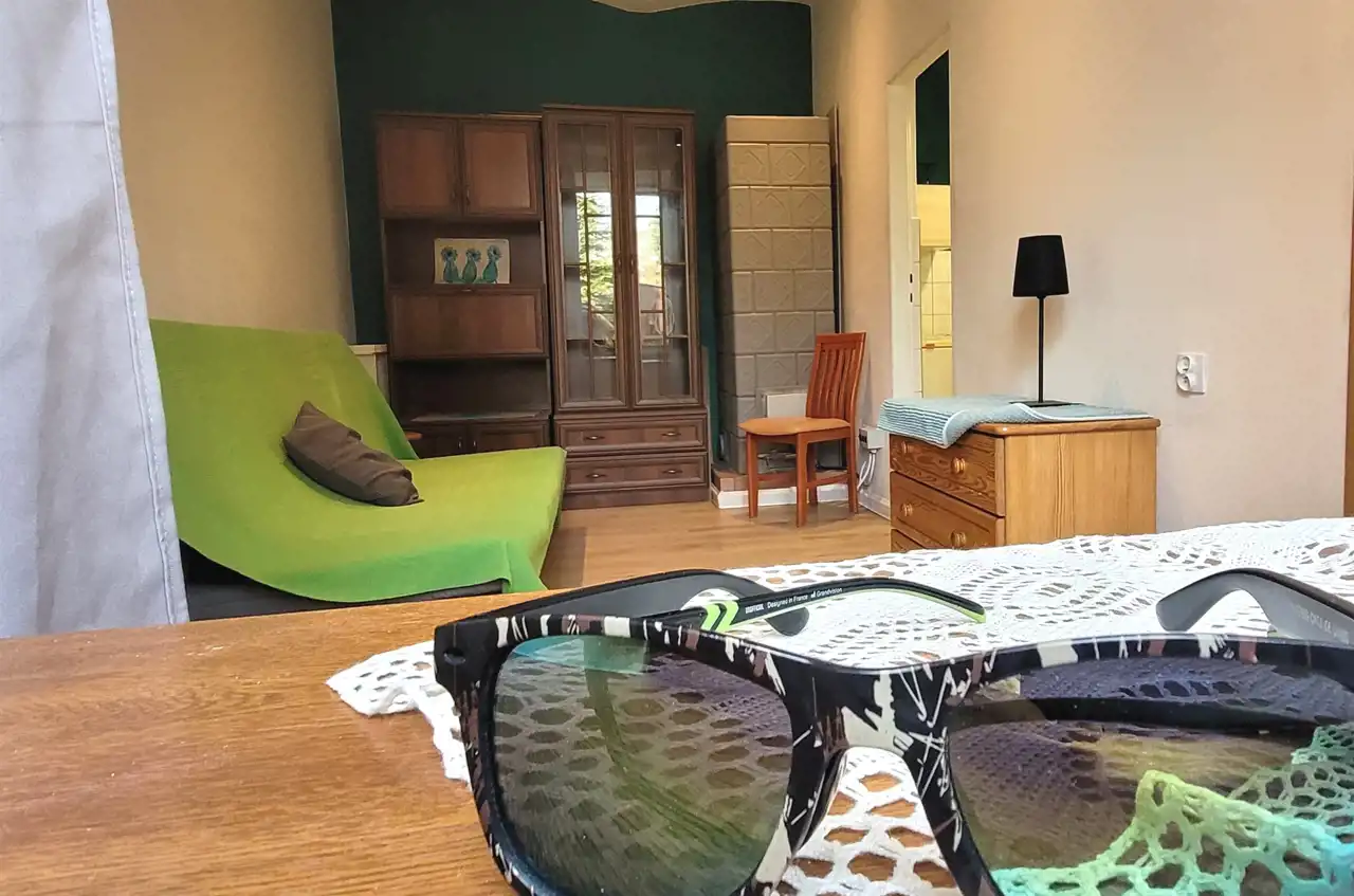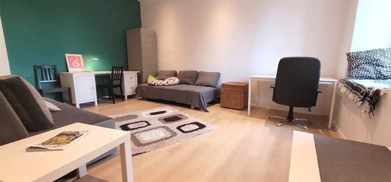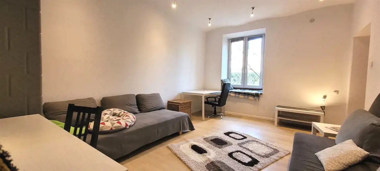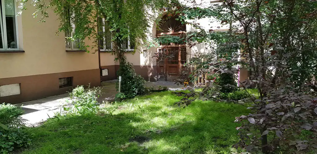 In the center of the old town with a view of the green, well-kept yard, residential purpose with an area of 43 m2, consisting of 2 rooms (13 m2 and 19 m2), bathroom and kitchen, located on the ground floor with direct entrance from the well-kept yard.