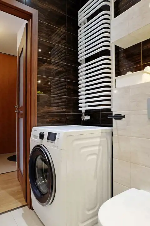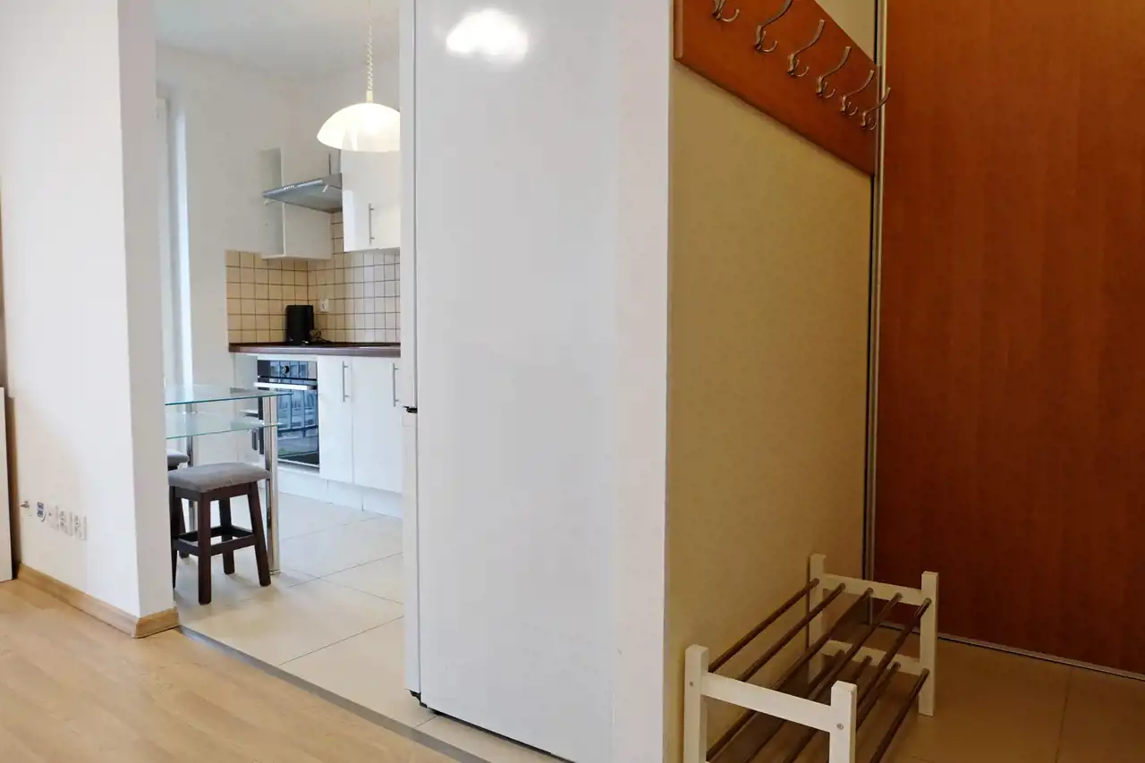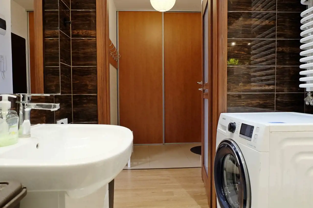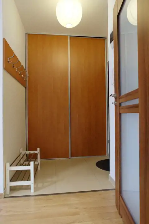 W przedpokoju wielka i pojemna szafa, odkurzacz, suszarka na pranie.