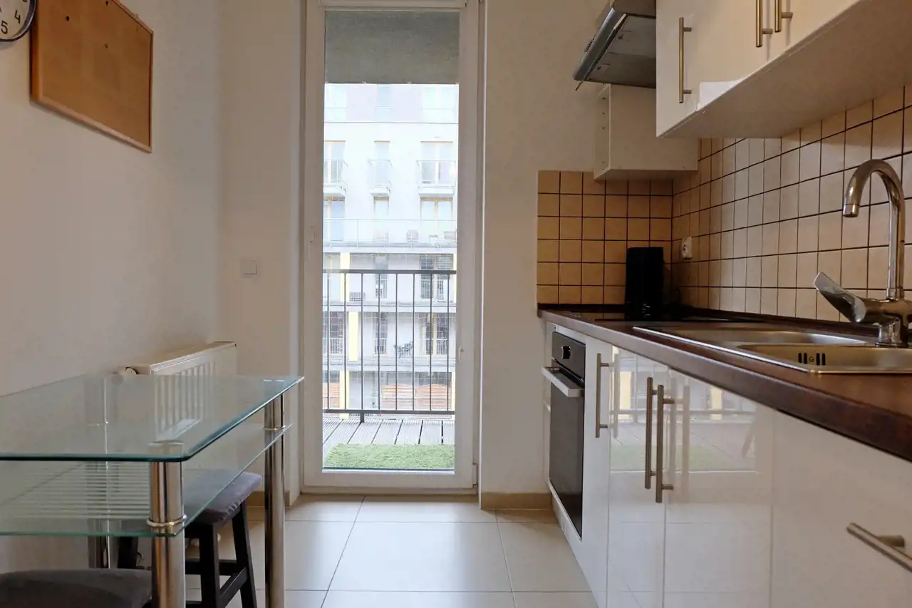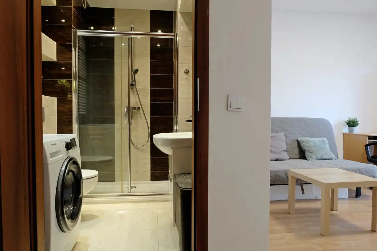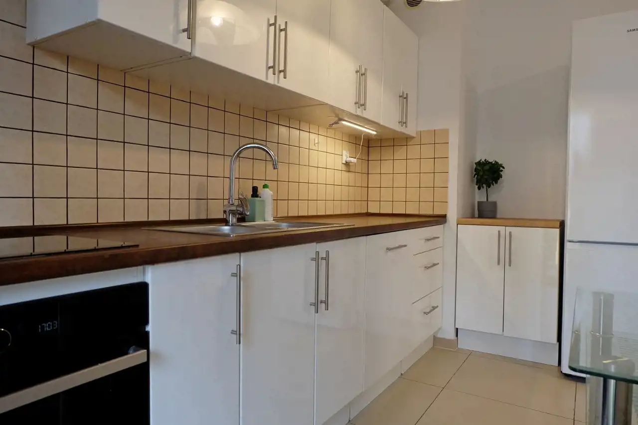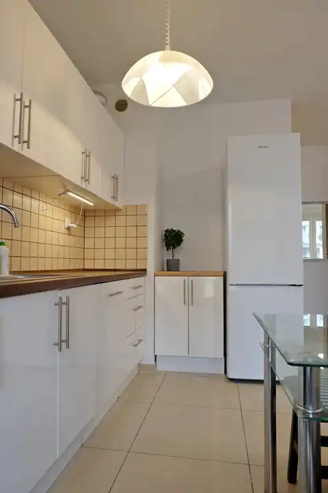 Pełny sprzęt kuchenny (zmywarka, lodówka, płyta indukcyjna, okap, pojemne szafki),