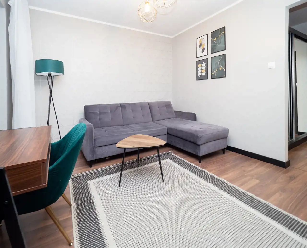 The apartment is situated on Akacjowa Street, in a well-connected part of Kraków.