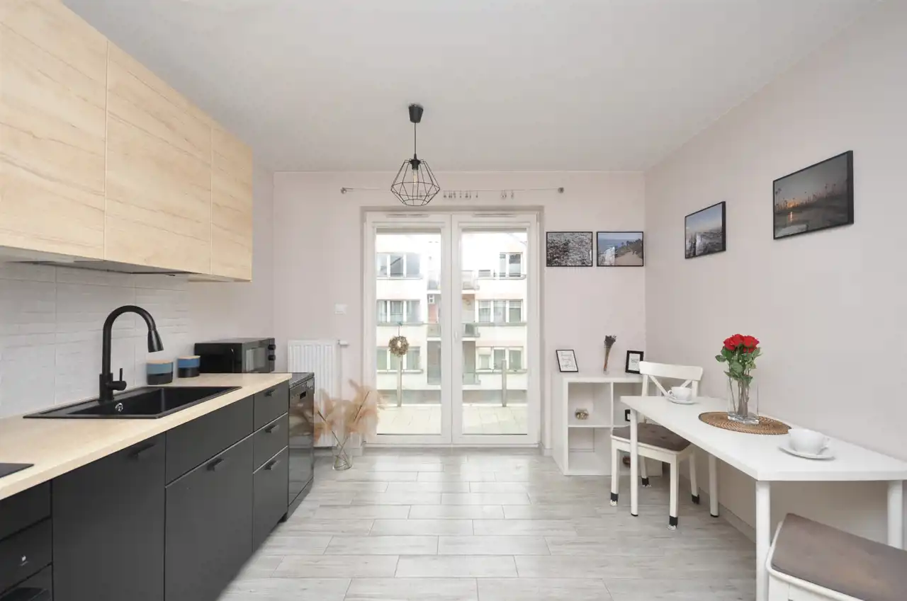 Prezentujemy wygodne, 2-pokojowe mieszkanie na wynajem, znajdujące się na zamkniętym osiedlu przy ul. Sosnowieckiej w Krakowie.