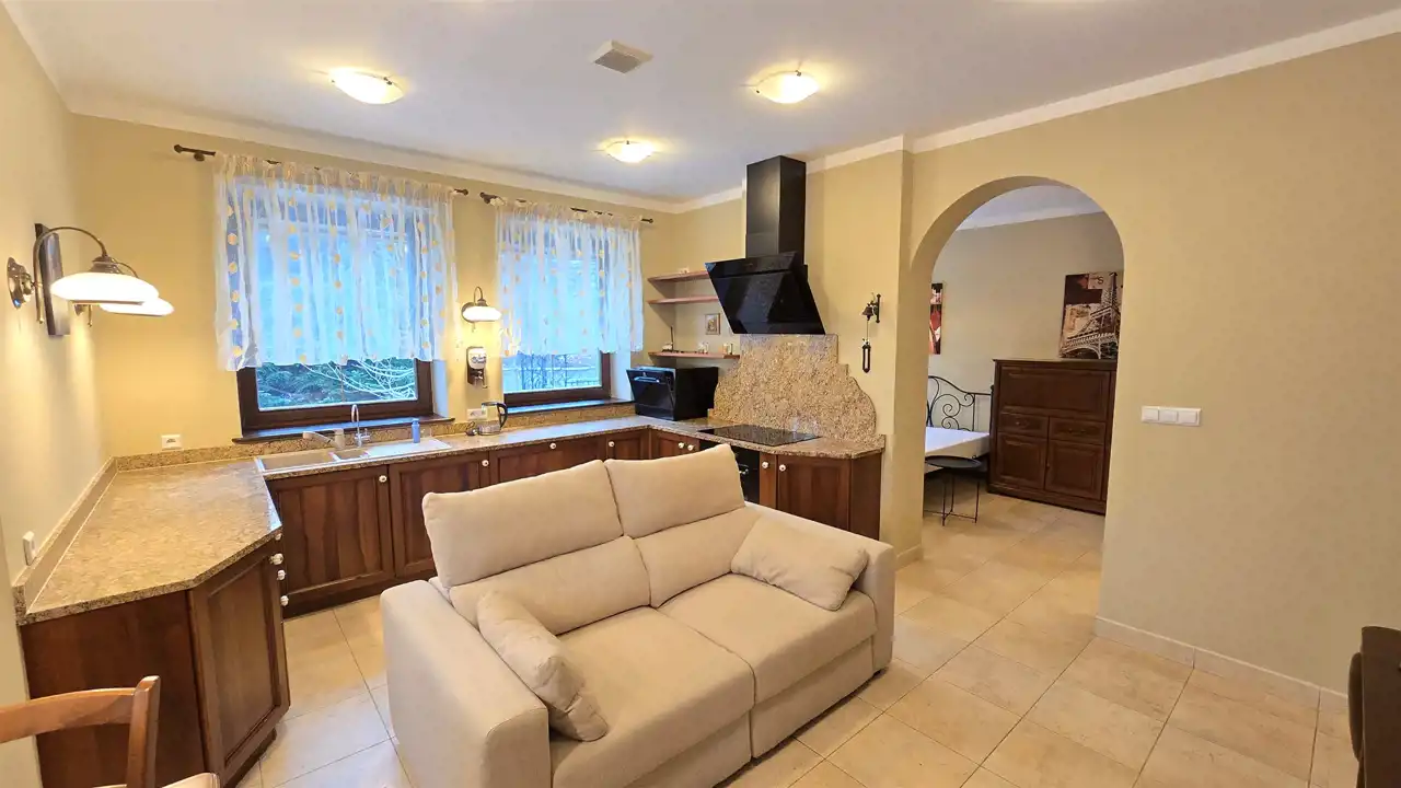 Mieszkanie w pełni wyposażone - pralka, lodówka, suszarka, telewizor.