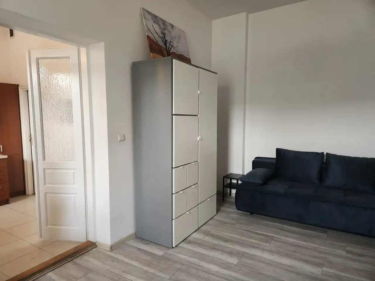 Na mieszkanie składają się 2 duże pomieszczenia garderoba z szafami, umeblowana kuchnia (meble, kuchenka gazowa, lodówka z zamrażarką, zmywarka, okap oraz stół z krzesłami) oraz łazienka (prysznic, toaleta, piec dwufunkcyjny, pralka, całość po remoncie).