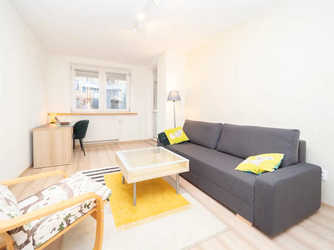The property has an area of 36 m². The apartment is located on the ground floor of a residential building and has been recently renovated. It is fully furnished and ready to move in immediately.