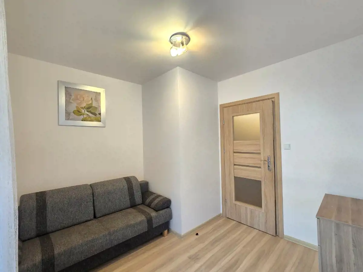 Meble kuchenne - kompletne, kuchenka: płyta ceramiczna z piekarnikiem, mikrofala, lodówka, z zamrażalnikiem. Na wyposażeniu pralka. Szafa w przedpokoju i meble pokojowe.