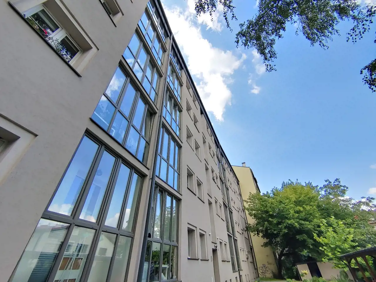 Widok z okien na wewnętrzny dziedziniec, absolutna cisza.
