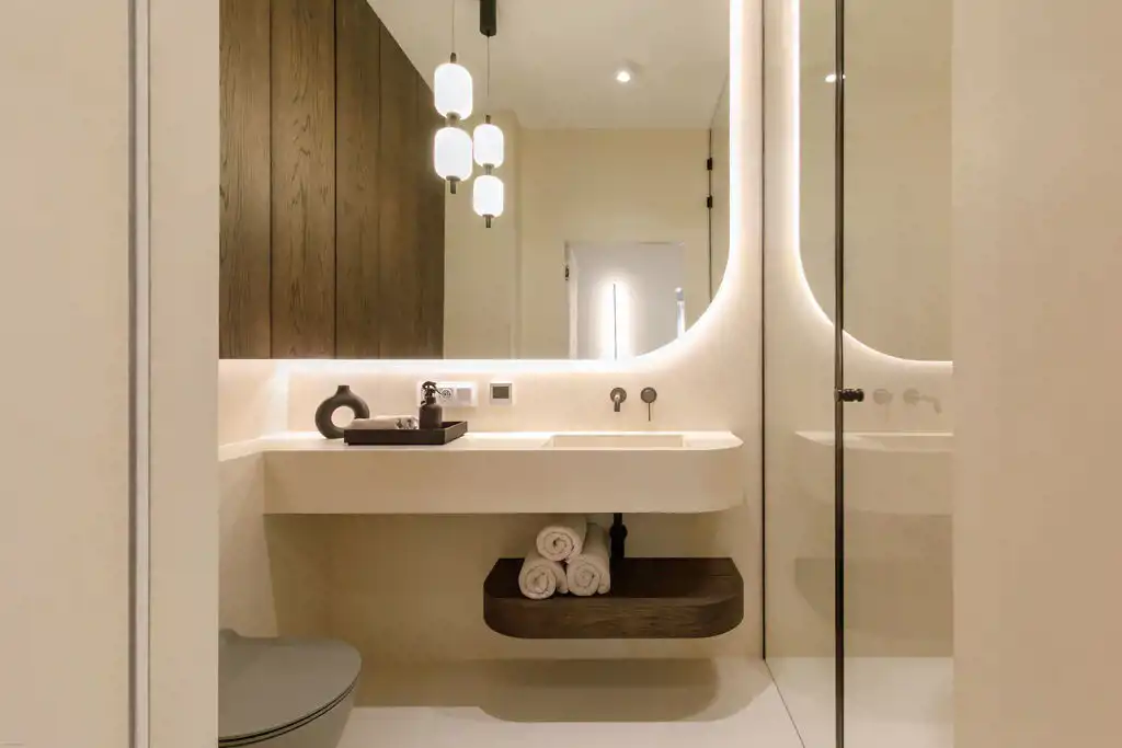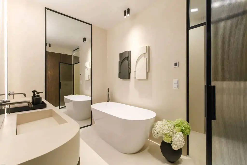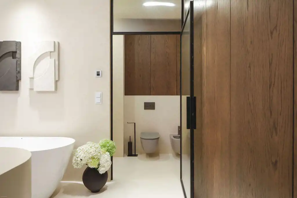 Wnętrze wykończone w standardzie premium z wykorzystaniem materiałów najwyższej jakości. Mieszkanie jest w pełni wyposażone w sprzęt AGD marki Miele, posiada klimatyzację, system Smart Home, alarm oraz ogrzewanie podłogowe w każdym pomieszczeniu. Do mieszkania przynależy taras 35 m2 z widokiem na Wisłę.