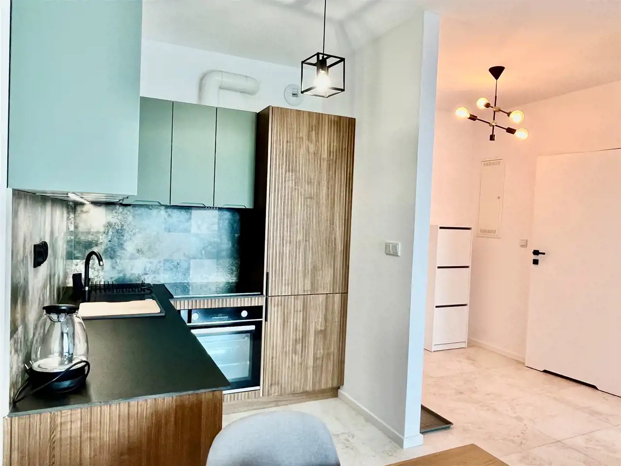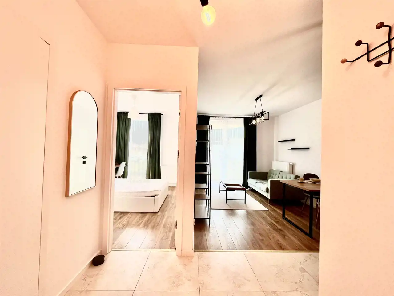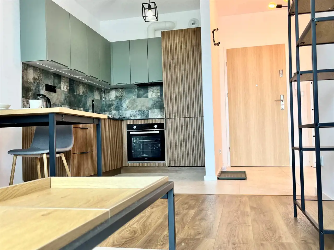 Mieszkanie świeżo po zakończonych pracach adaptacyjnych. Dominą stonowane i ciepłe kolory.