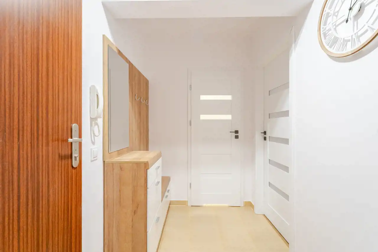 Mieszkanie znajduje się w bardzo dogodnej lokalizacji, tuż obok pętli tramwajowej Mistrzejowice, co zapewnia doskonałą komunikację z innymi częściami miasta. W bliskiej odległości znajduje się bogata infrastruktura: sklepy spożywcze, plac zabaw, przedszkola, żłobki oraz przystanki komunikacji autobusowej i tramwajowej. Dodatkowo, okolica obfituje w tereny spacerowe, w tym Park Tysiąclecia oraz Park Zaczarowanej Dorożki.