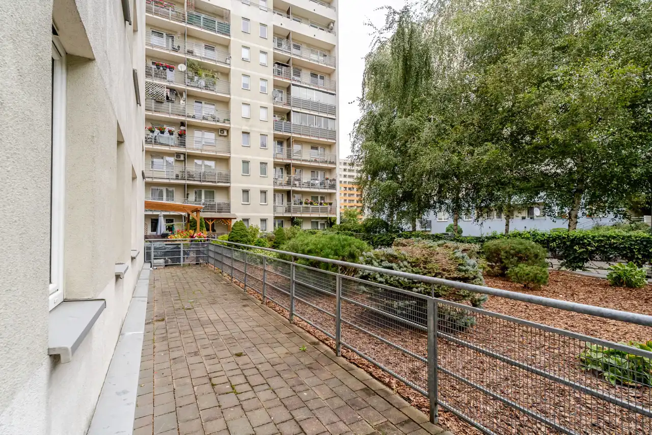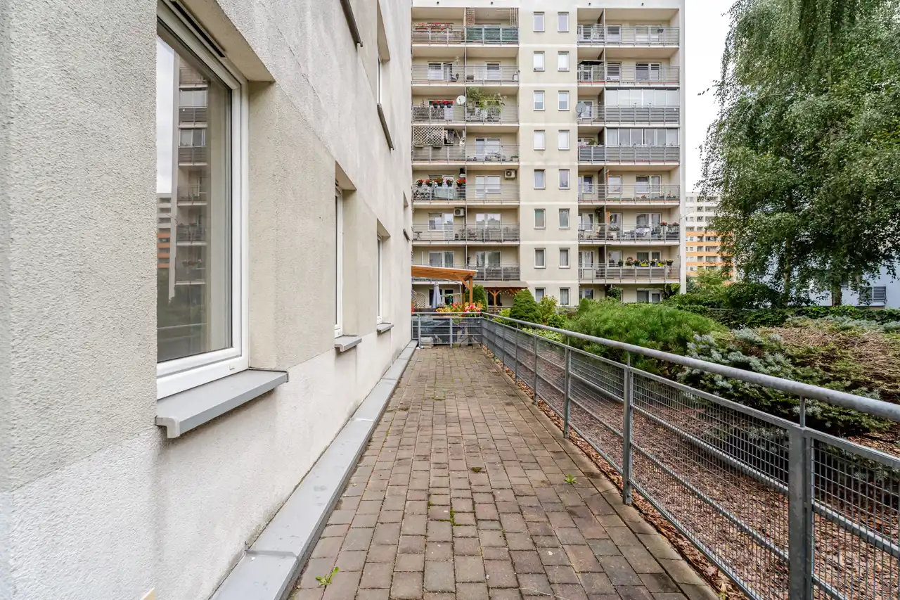 Oferowana nieruchomość jest na parterze w budynku 7-piętrowym. Osiedle ogrodzone z parkingiem zamykanym bramą na pilota.