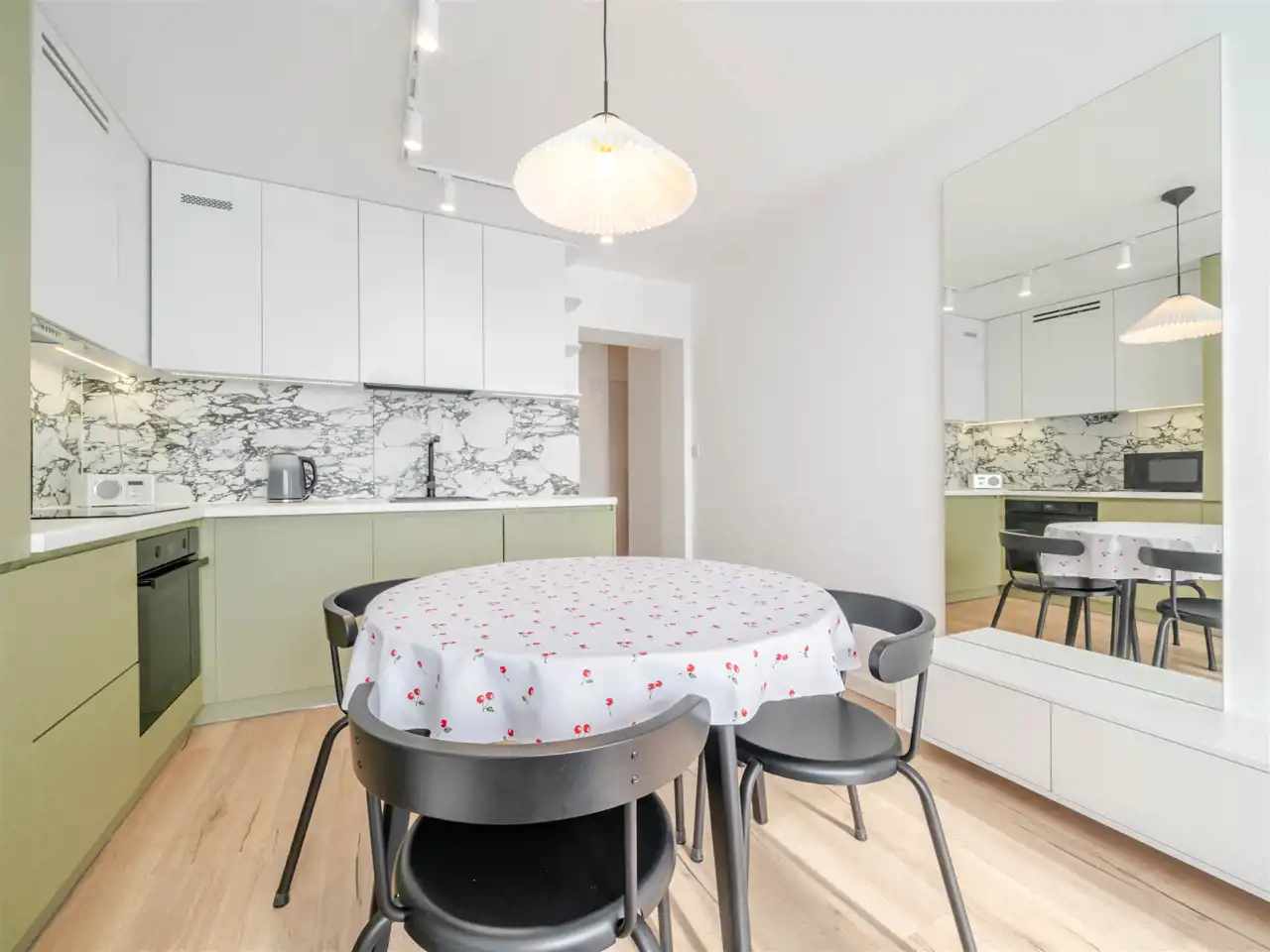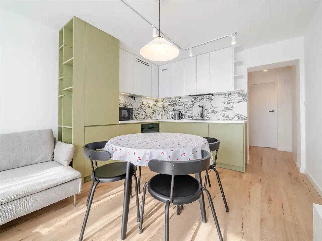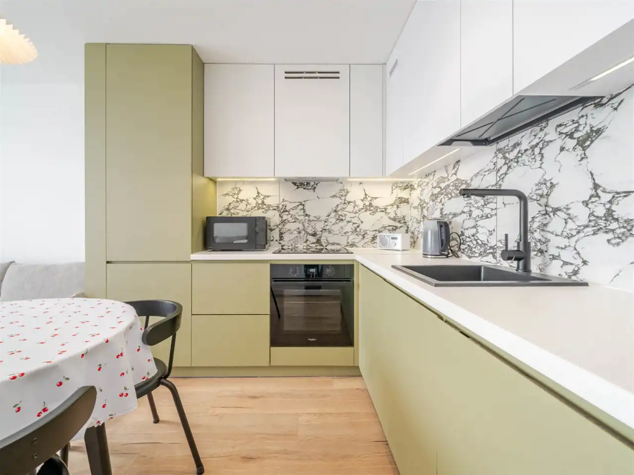 - pokoju dziennego z aneksem kuchennym - meble w zabudowie, lodówka z zamrażarką, płyta indukcyjna, piekarnik elektryczny, mikrofalówka, zmywarka;