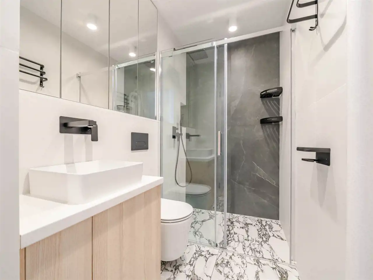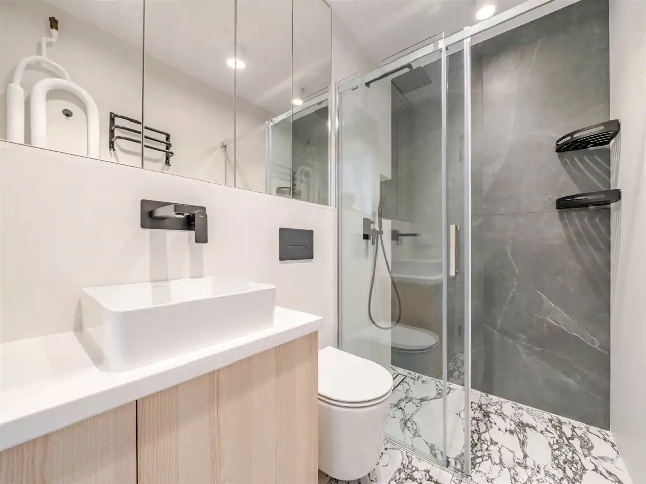- łazienka - kabina prysznicowa, toaleta, lustro;