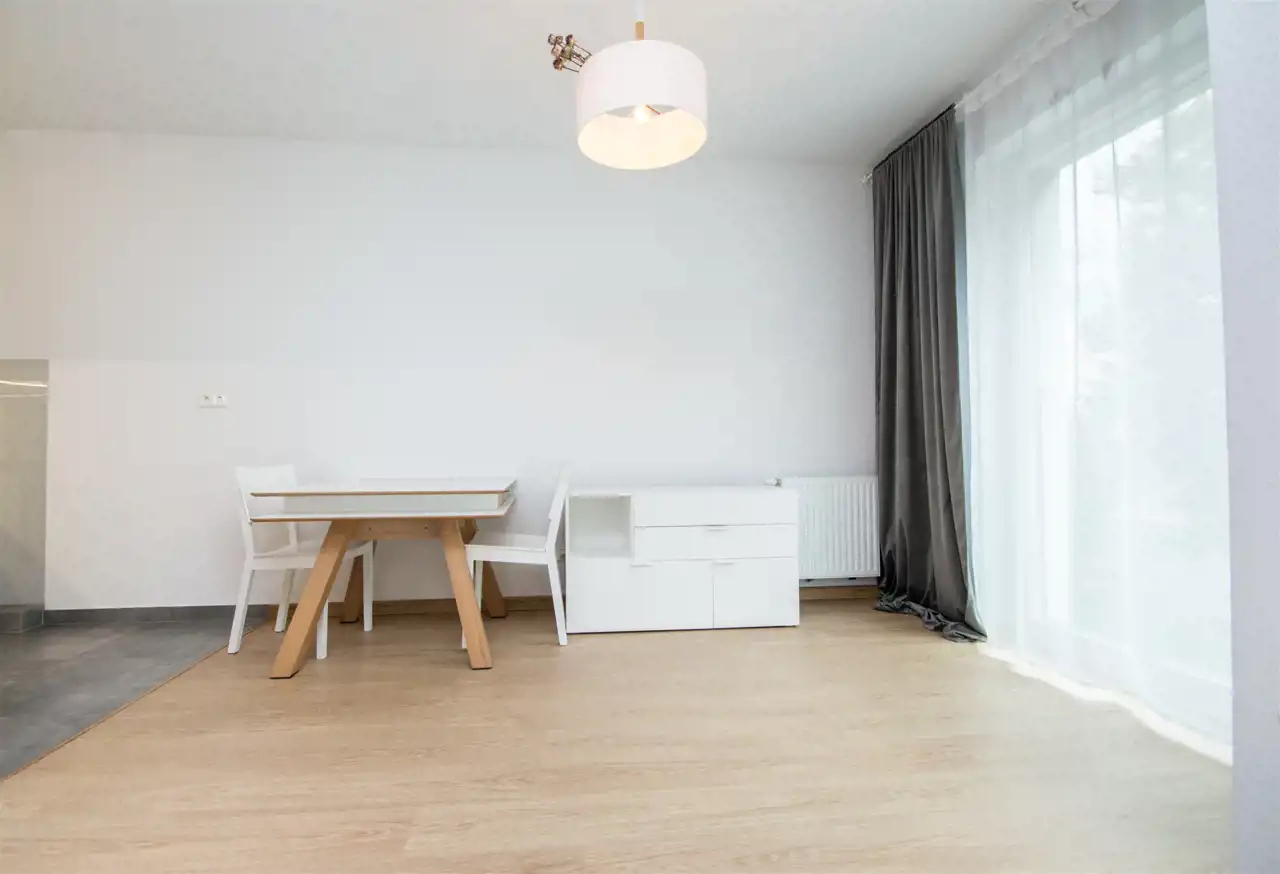 Aneks kuchenny jest w pełni wyposażony w lodówkę z zamrażalnikiem, piekarnik, płytę indukcyjną oraz zmywarkę.