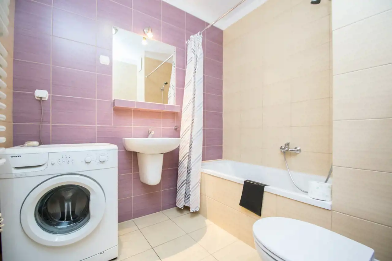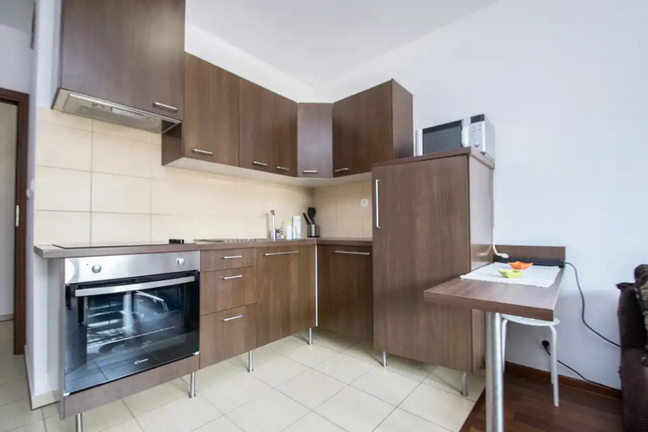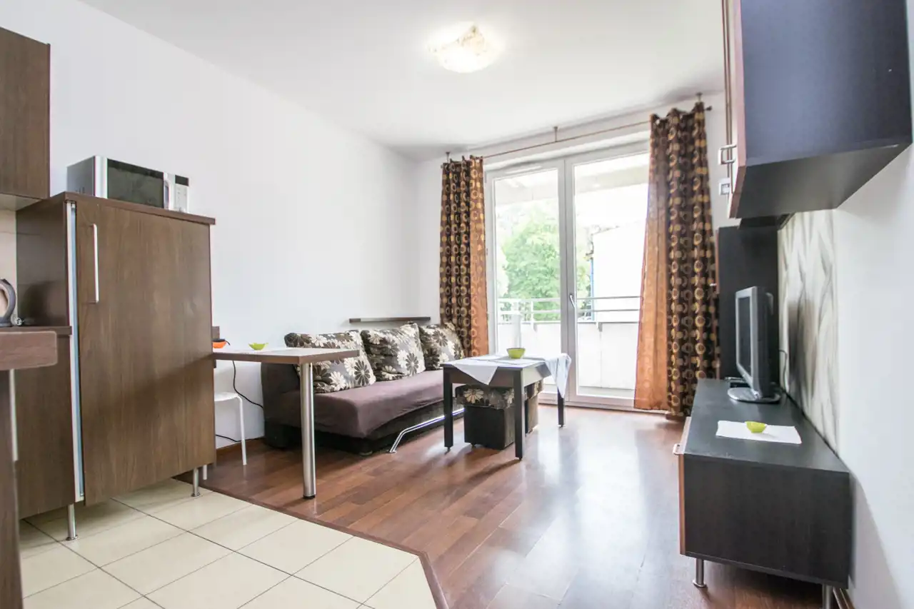 Mieszkania jest w pełni umeblowane i wyposażone. W kuchni wszystkie potrzebne sprzęty AGD (lodówko-zamrażalka, mikrofalówka, płyta grzewcza,) oraz stół. Dodatkowo w szafkach znajduje się pełne wyposażenie kuchenne, sztućce, szklanki talerze, garnki, itp. Salon wyposażony w sofę, stolik kawowy, meble do przechowywania oraz TV. W sypialni podwójne wygodne łóżko, szafa. Łazienka z wanną z opcją prysznicu, pralką, umywalką. W przedpokoju szafa oraz komoda. Mieszkanie bardzo przytulne i komfortowe w pełni wyposażone. W budynku nie ma gazu.