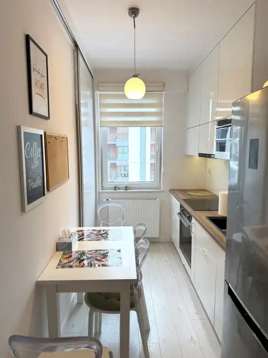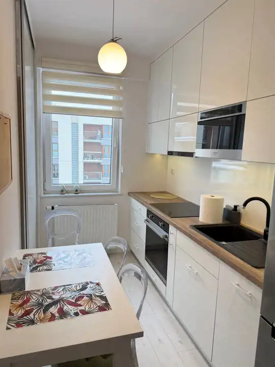 Na metraż 44 m2 składa się przestronny, nowoczesny salon z wyjściem na loggię, oddzielna jasna sypialnia, niezależna widna kuchnia, łazienka oraz przedpokój. Mieszkanie w pełni umeblowane oraz wyposażone we wszystkie sprzęty AGD. Istnieje możliwość wynajęcia miejsca postojowego w garażu podziemnym wraz z komórką lokatorską. W budynku monitoring i winda. Ogrzewanie MPEC. Dostępne od zaraz.