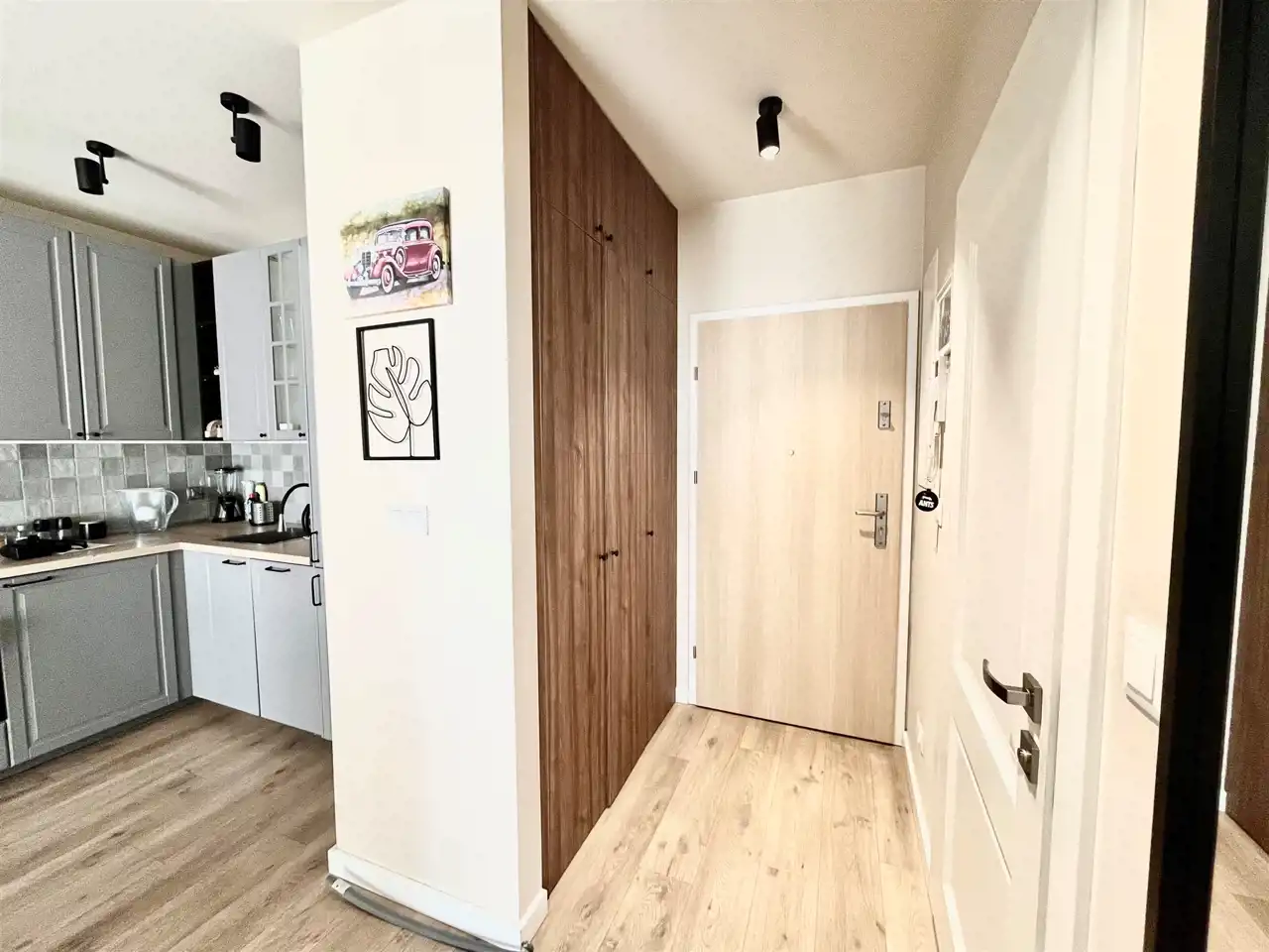 w przedpokoju :duża szafa, videodomofon